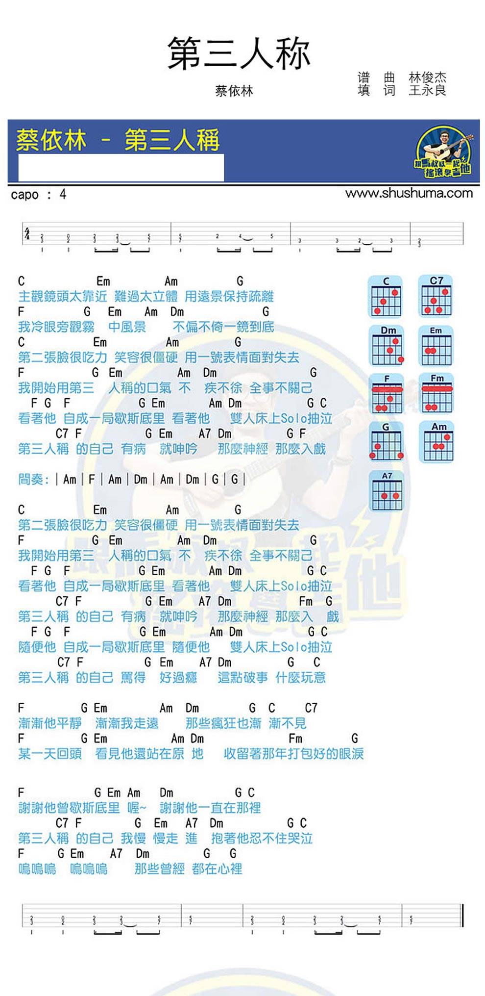 第三人称 弹唱吉他谱