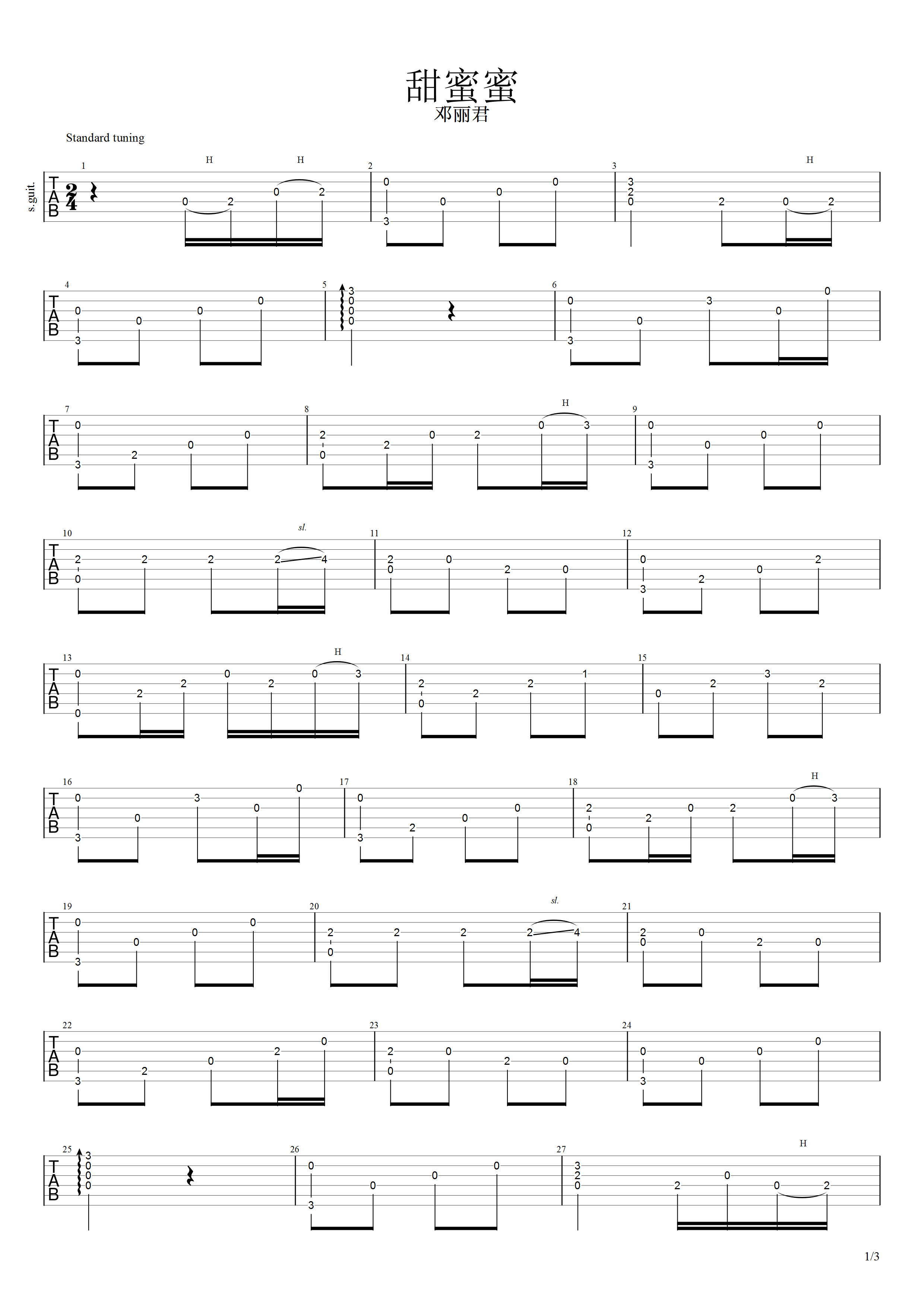 吉他谱 | 经典指弹《甜蜜蜜》