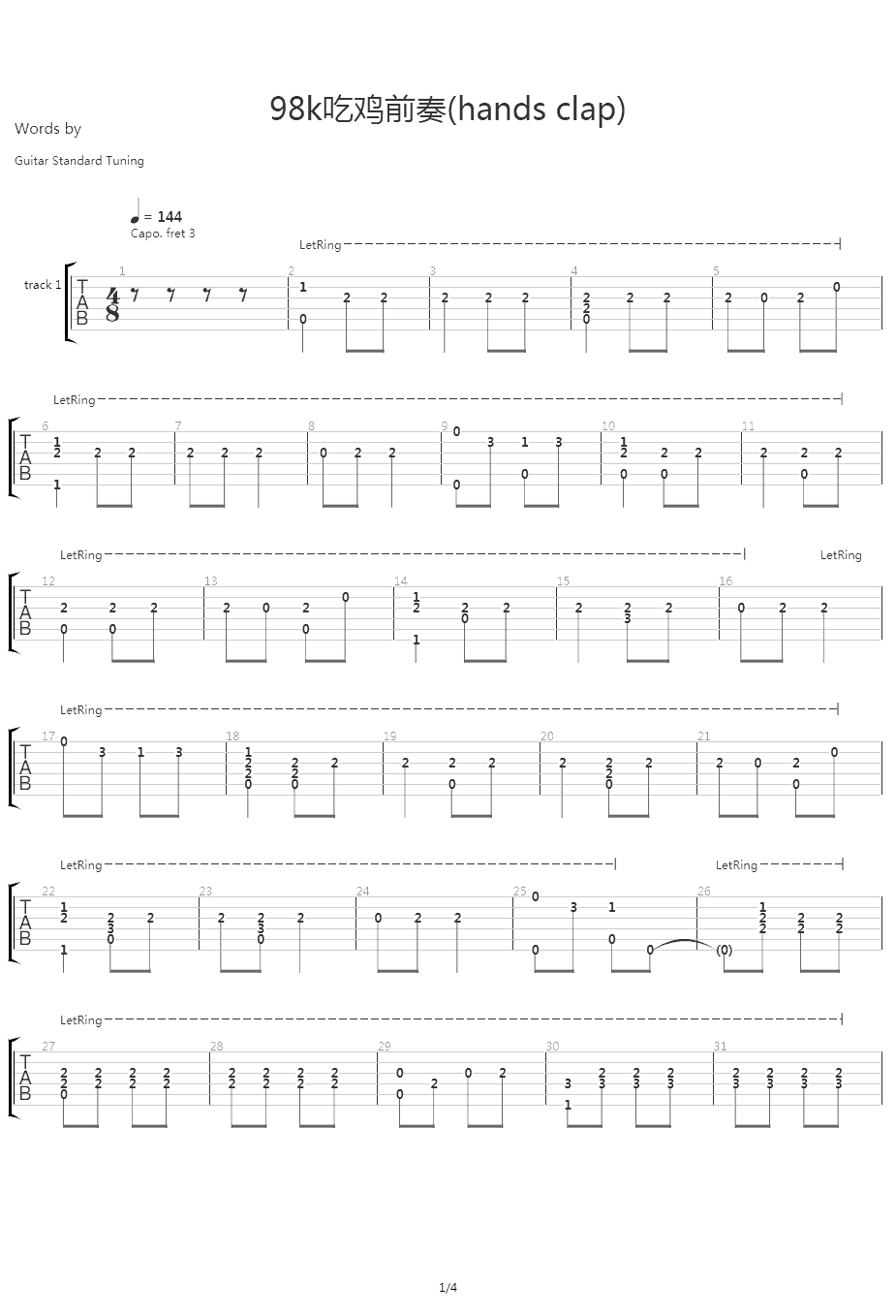 本站曲谱部分来源于网络,仅供学习交流分享,本网站不承担任何由于内容的使用所引起的争议及损失。如有侵权,可联系管理员删除处理。本文链接:http://www.ggjita.com/jitapu/15998.html