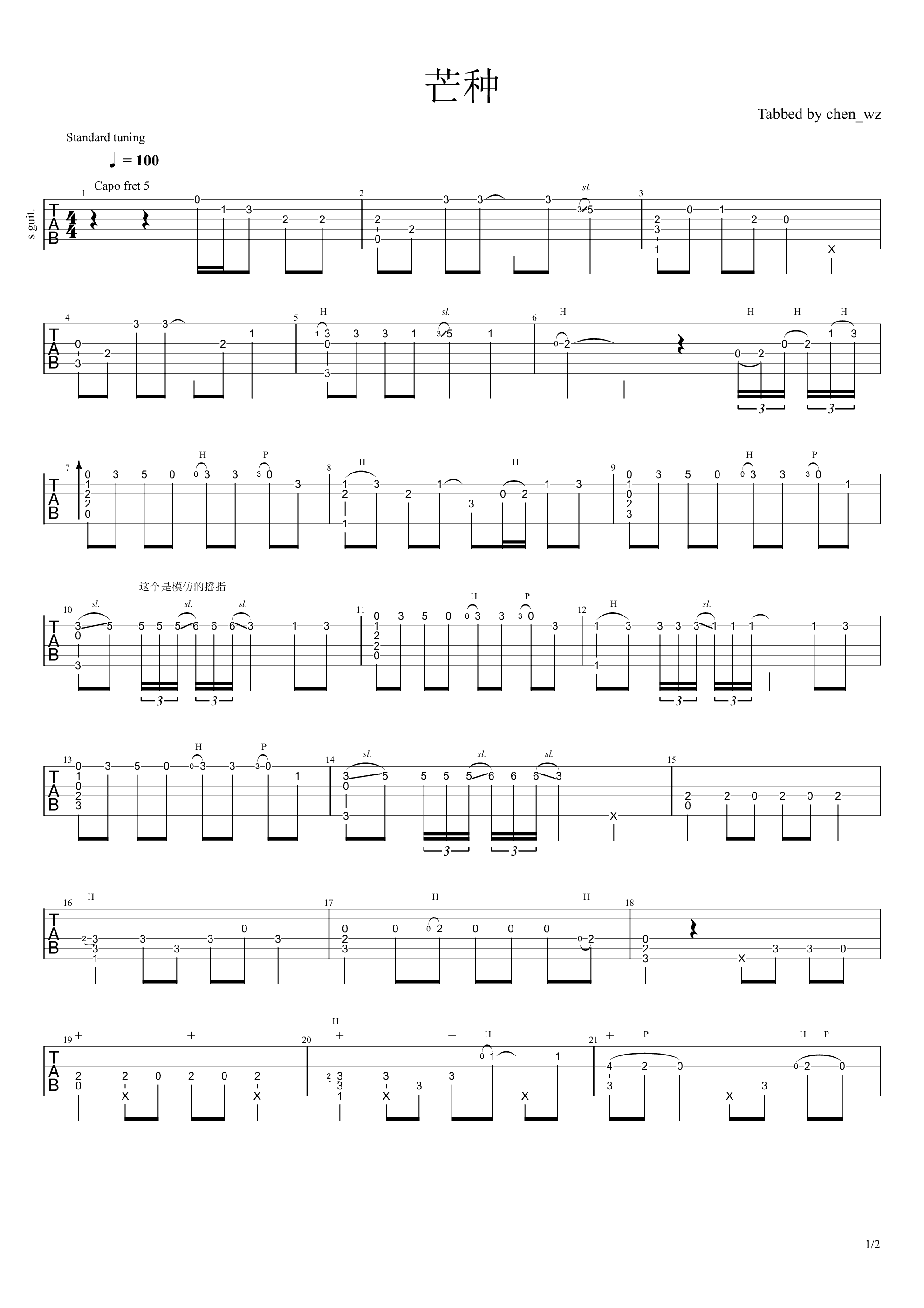 吉他谱 | 经典指弹《芒种》