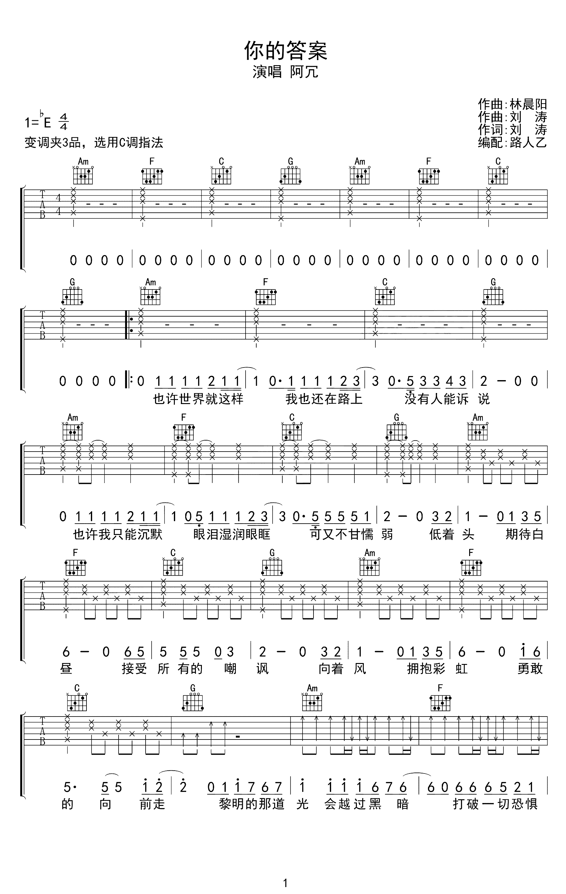 吉他谱 | 热门弹唱《你的答案》