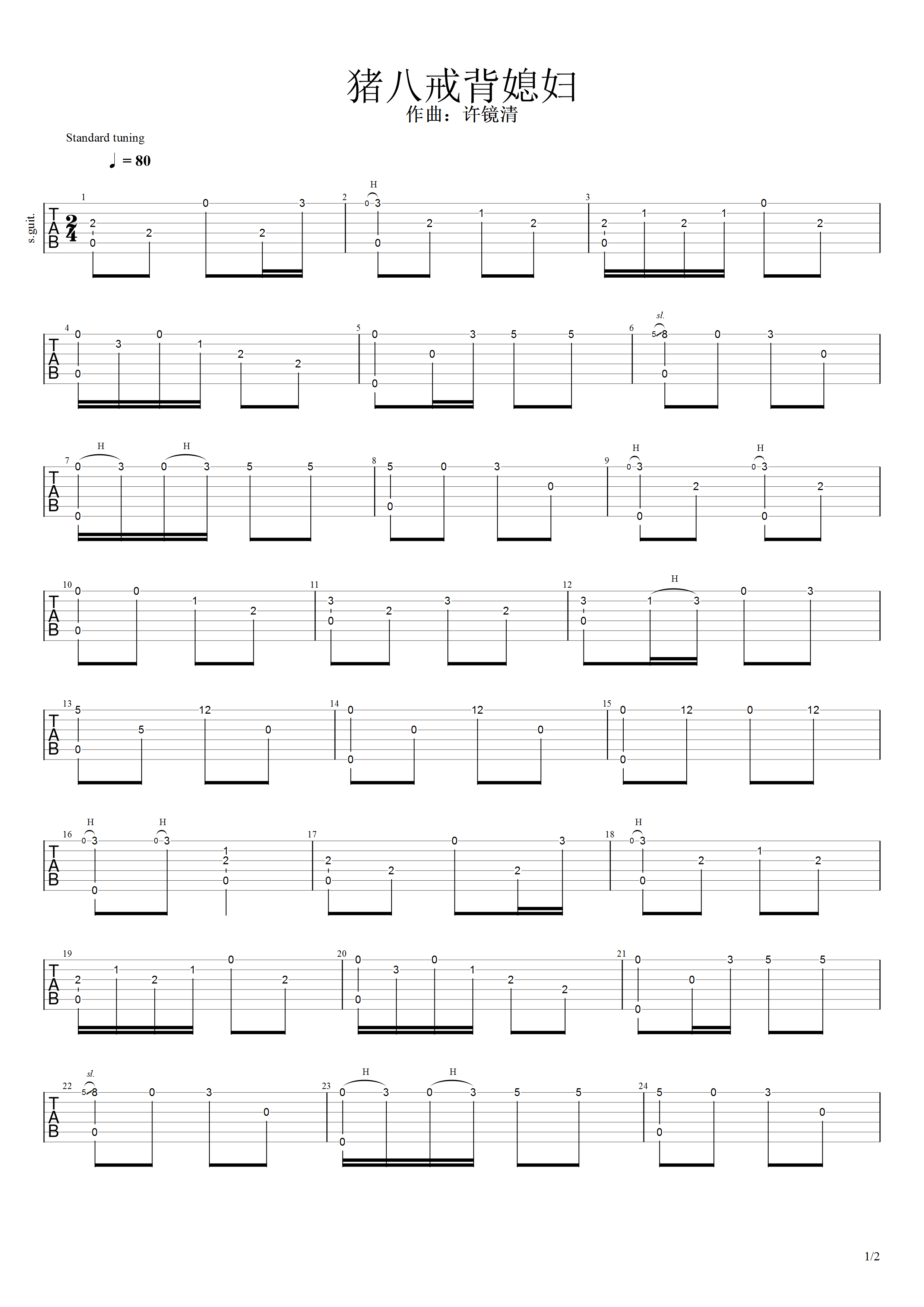 吉他谱 | 经典指弹《猪八戒背媳妇》