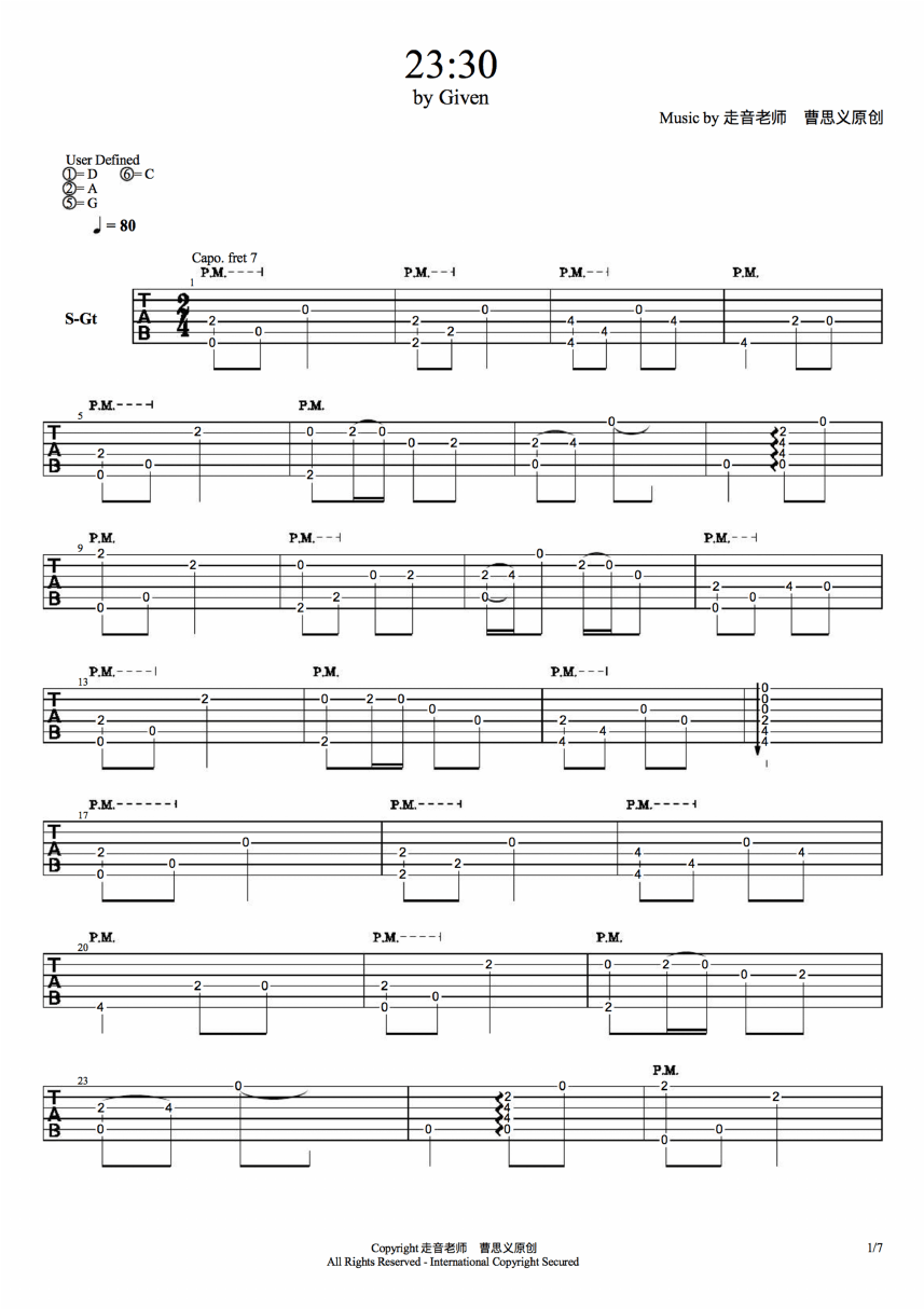 吉他谱 | 经典指弹《23:30》