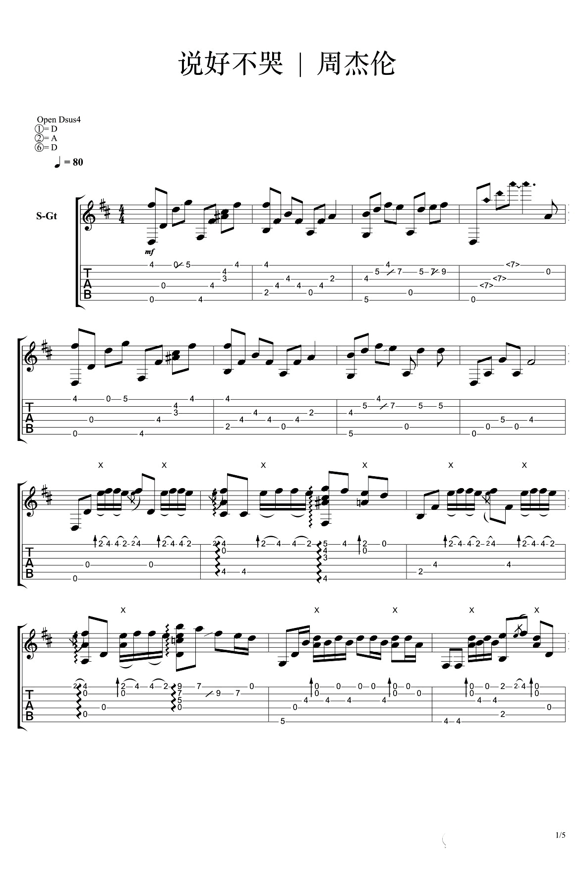 吉他谱 | 经典指弹《说好不哭》