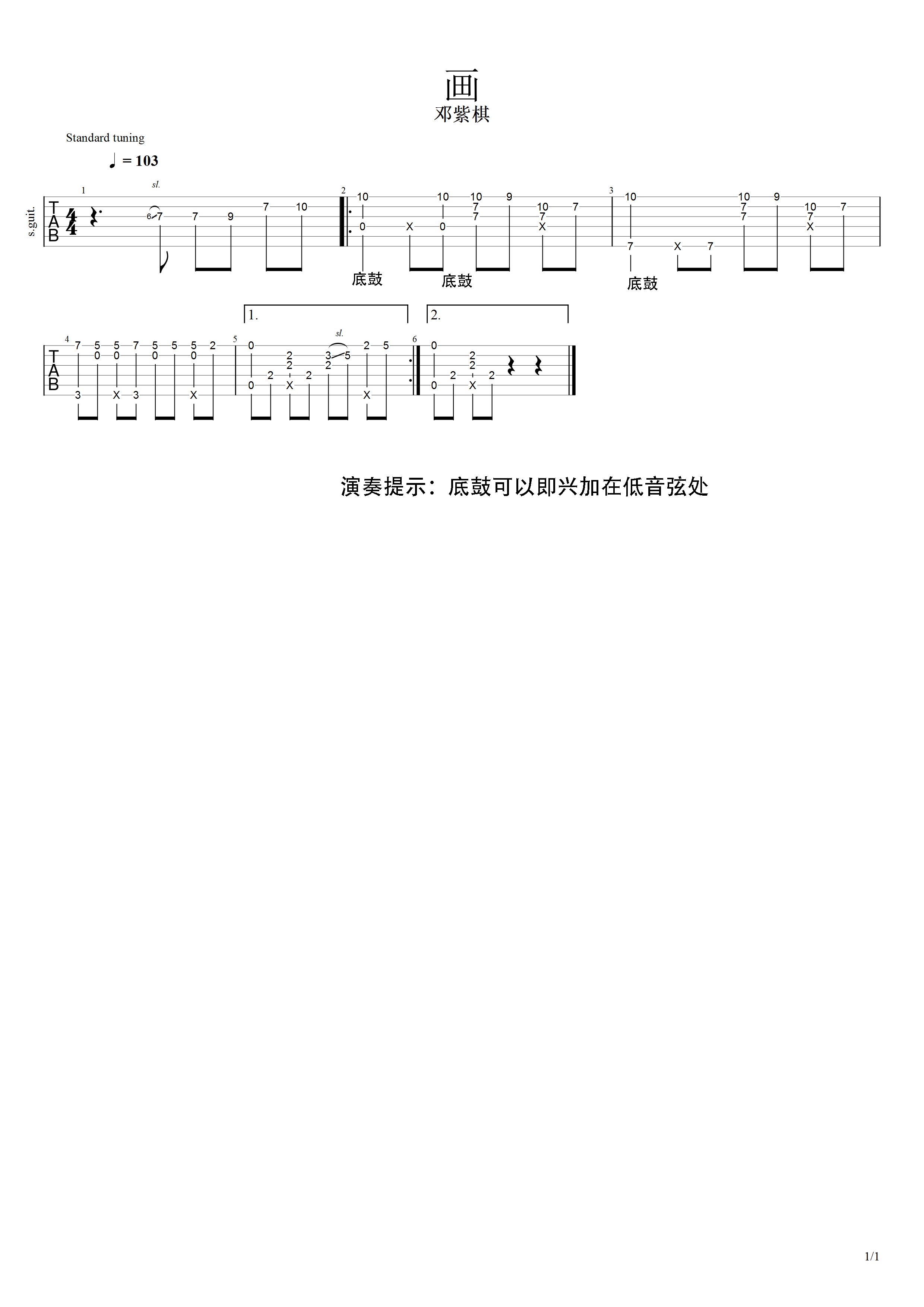 吉他谱(片段) | 指弹-邓紫棋《画》