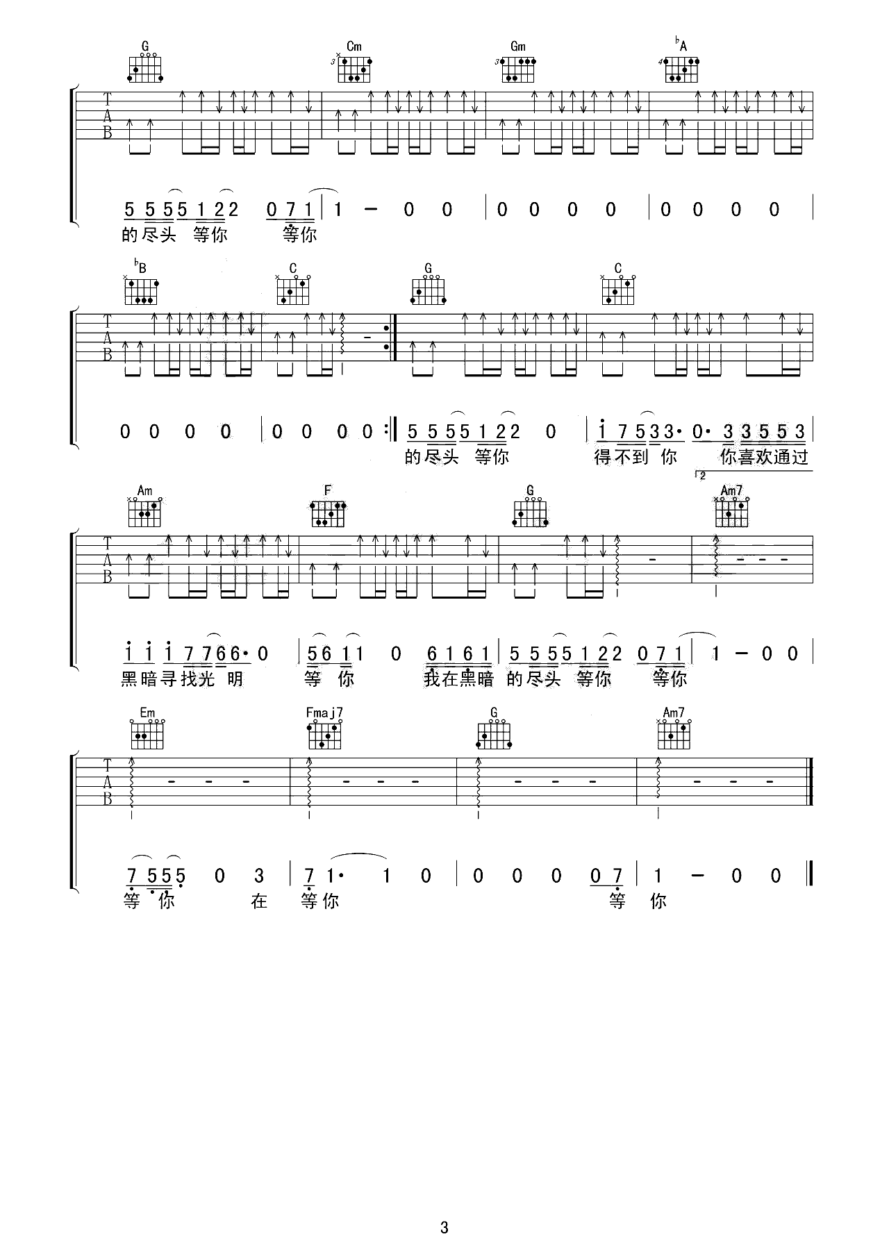 关键词吉他谱_林俊杰_抖音简单版+C调原