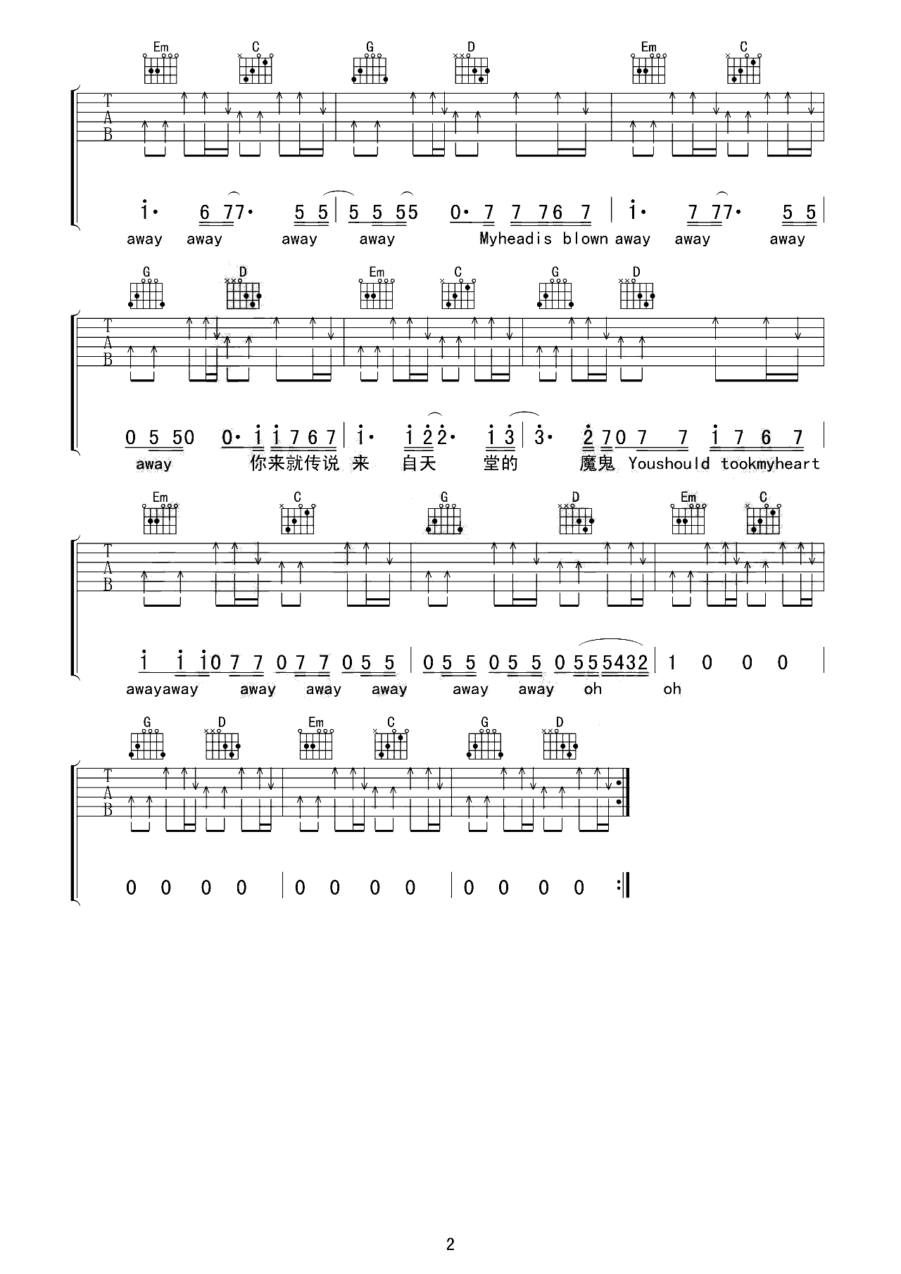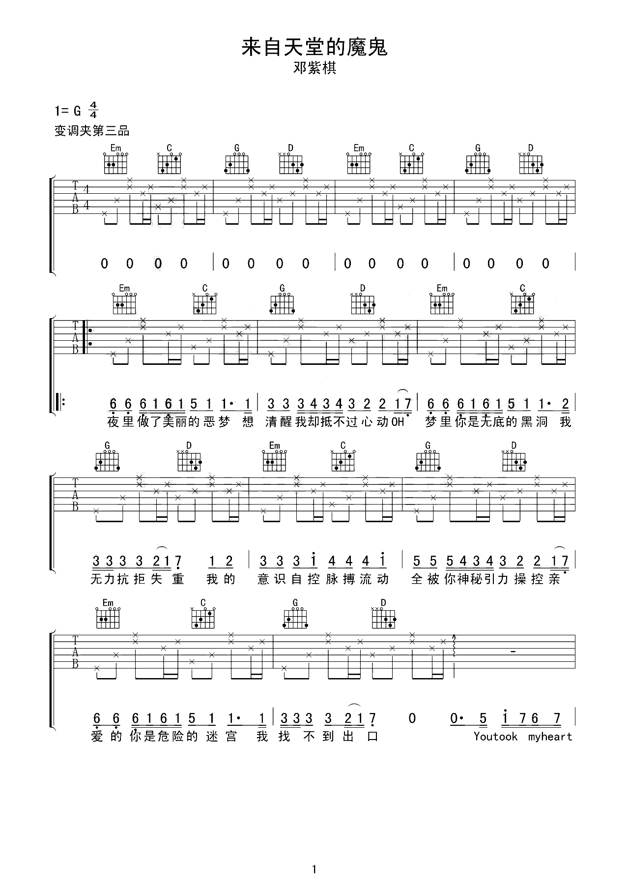 吉他谱 | 热门弹唱《来自天堂的魔鬼》