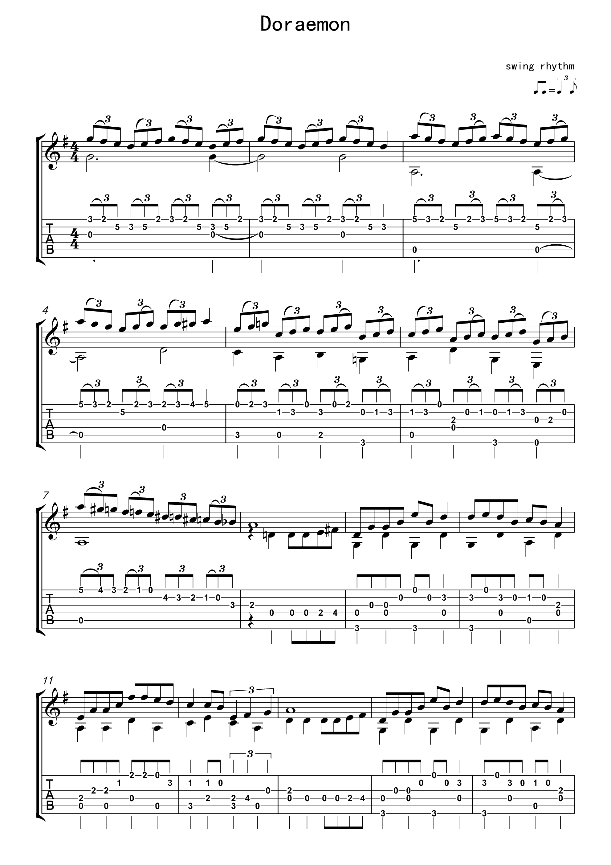 吉他谱 | 经典指弹《哆啦A梦》
