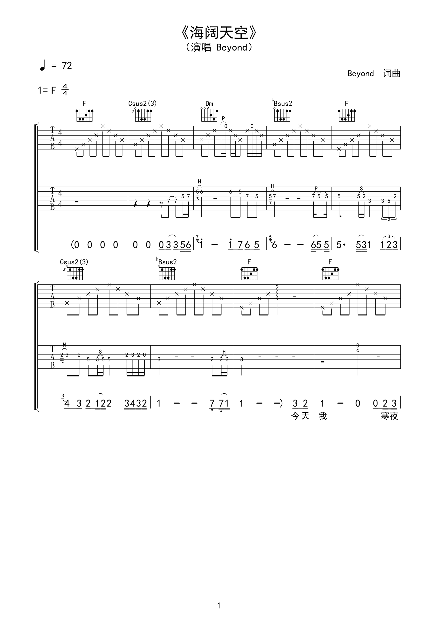 吉他谱 | 双吉他版《海阔天空》