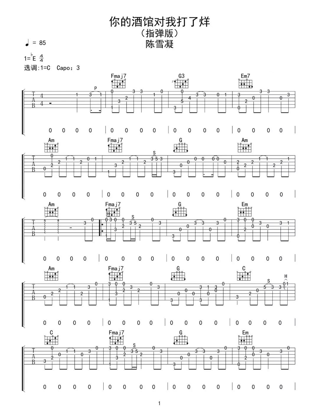 吉他谱 | 经典指弹《你的酒馆对我打了烊》