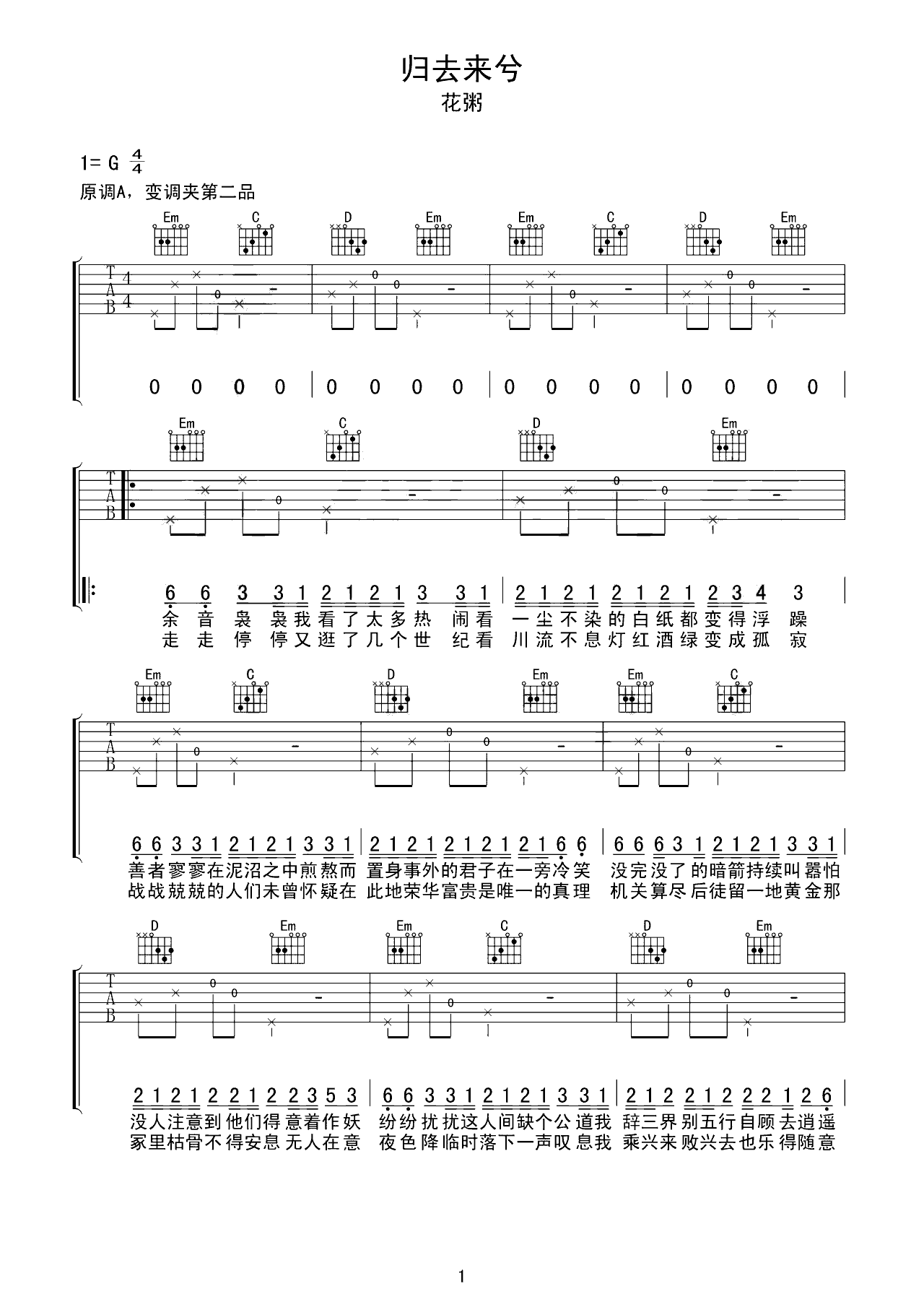 吉他谱 | 热门弹唱《归去来兮》