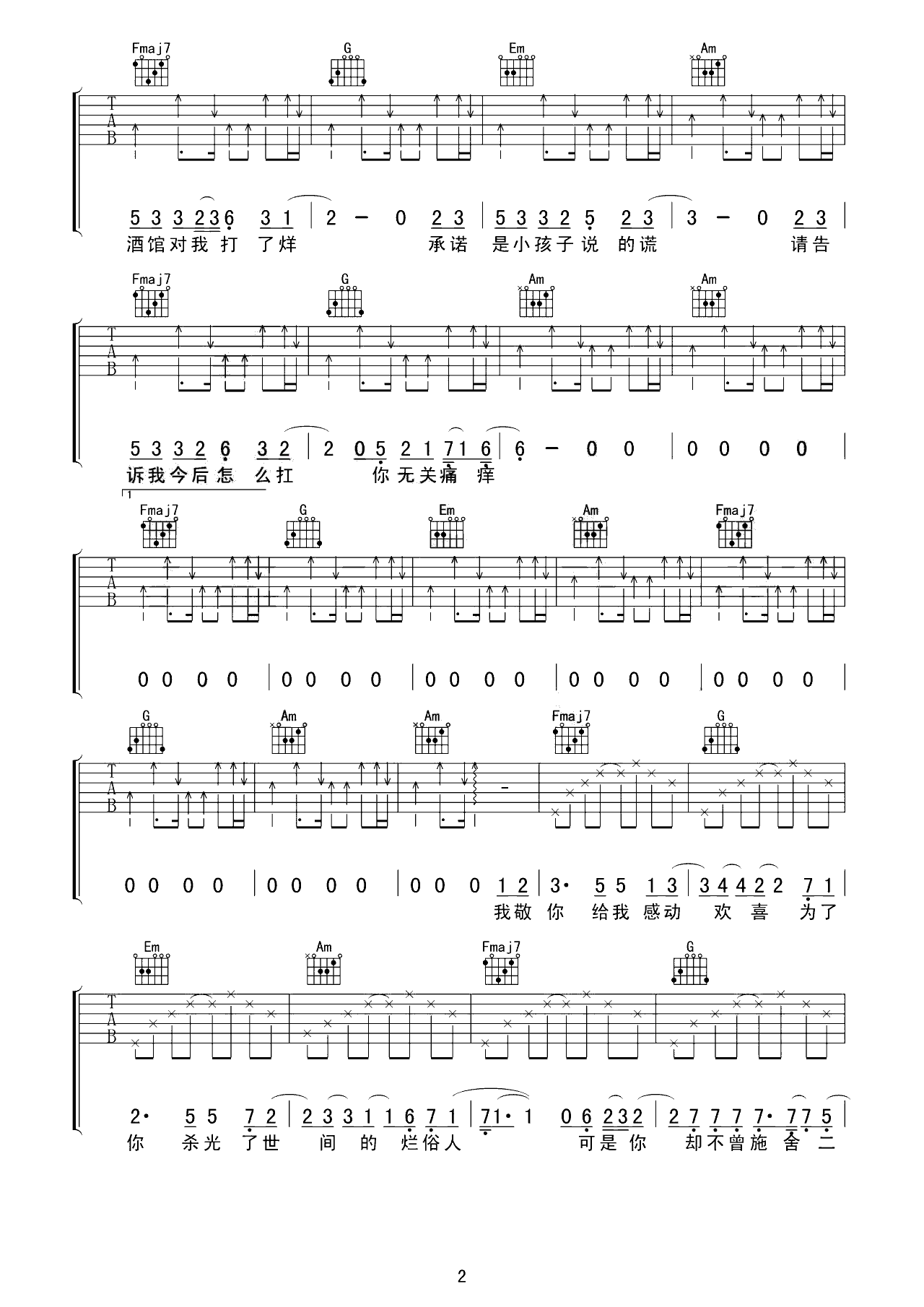 吉他谱 | 热门弹唱《你的酒馆对我打了烊》