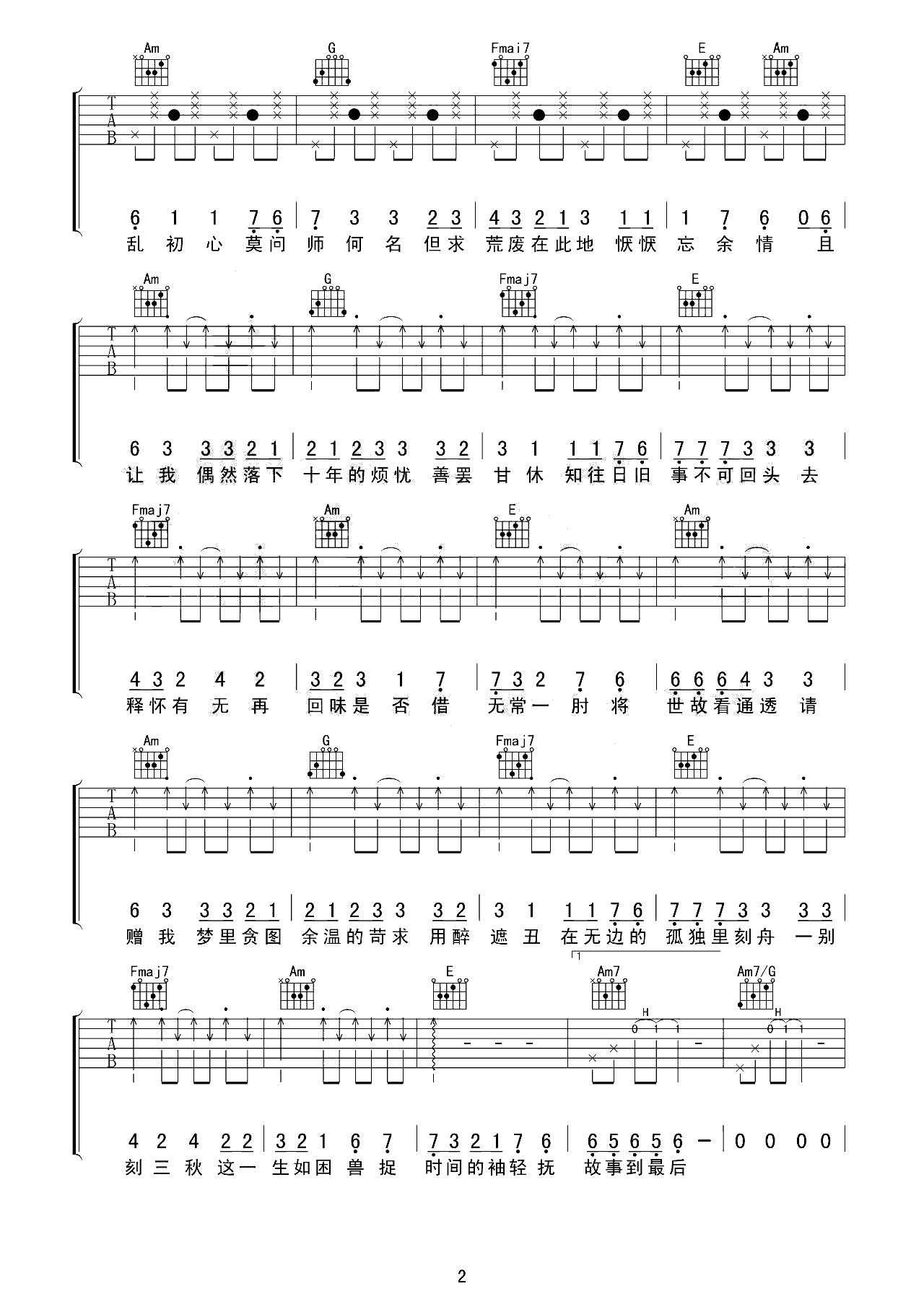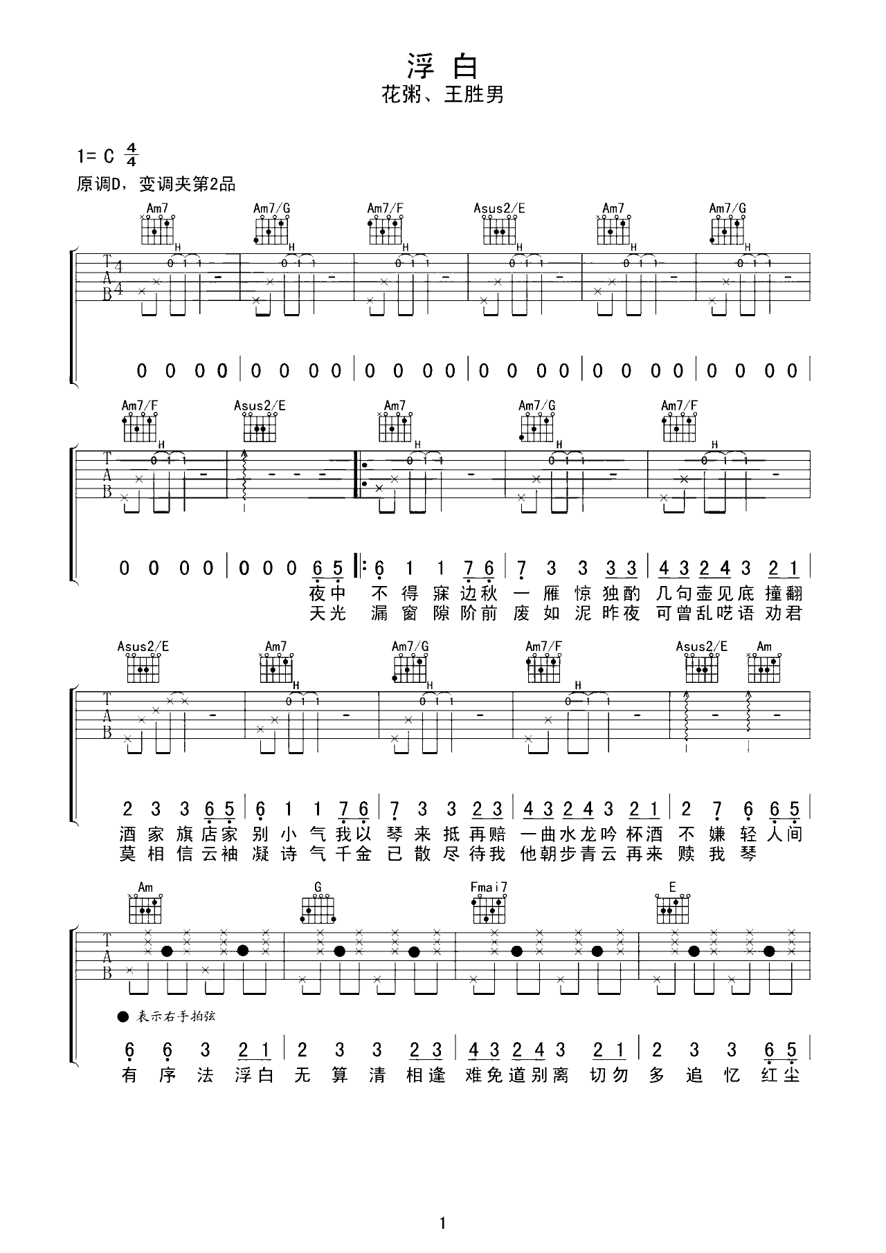 吉他谱 | 热门弹唱《浮白》