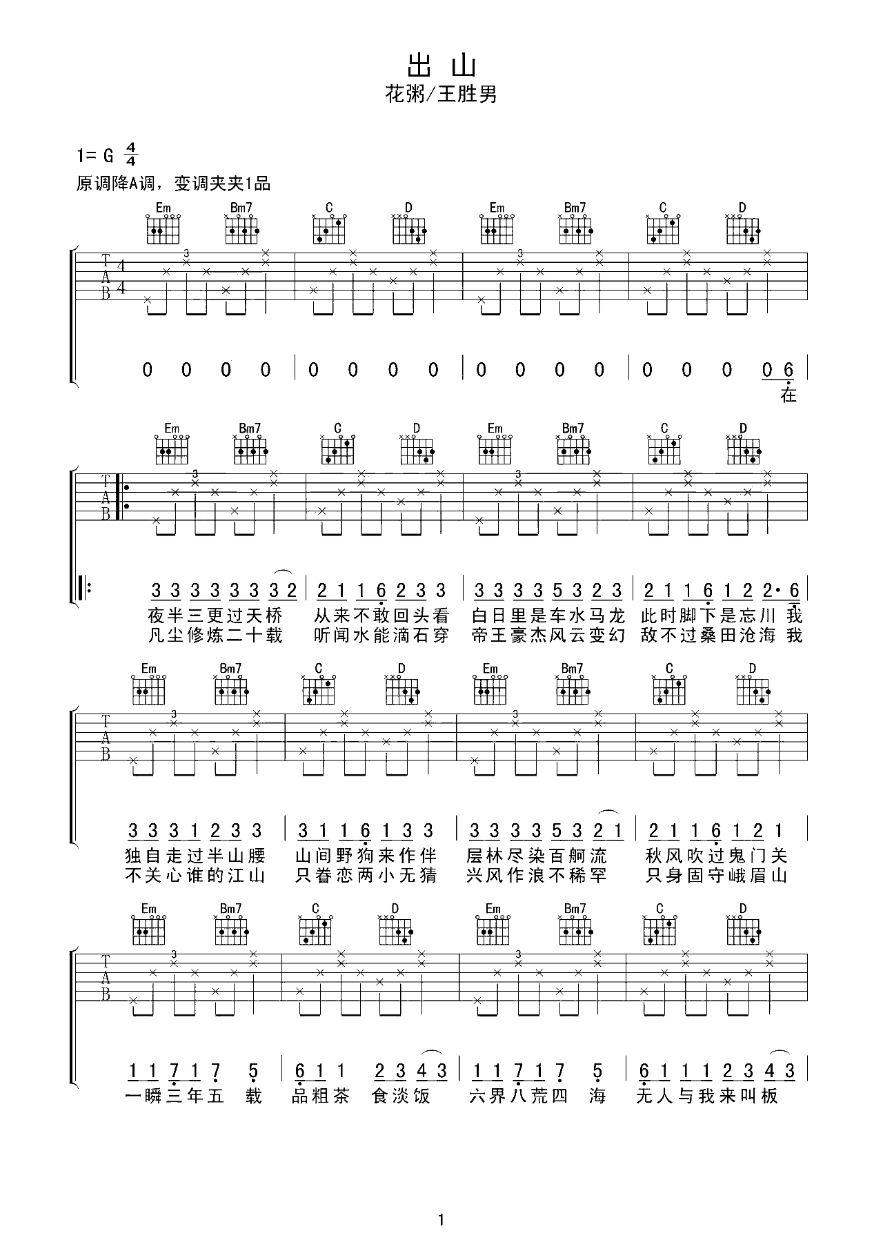 吉他谱 | 热门弹唱《出山》