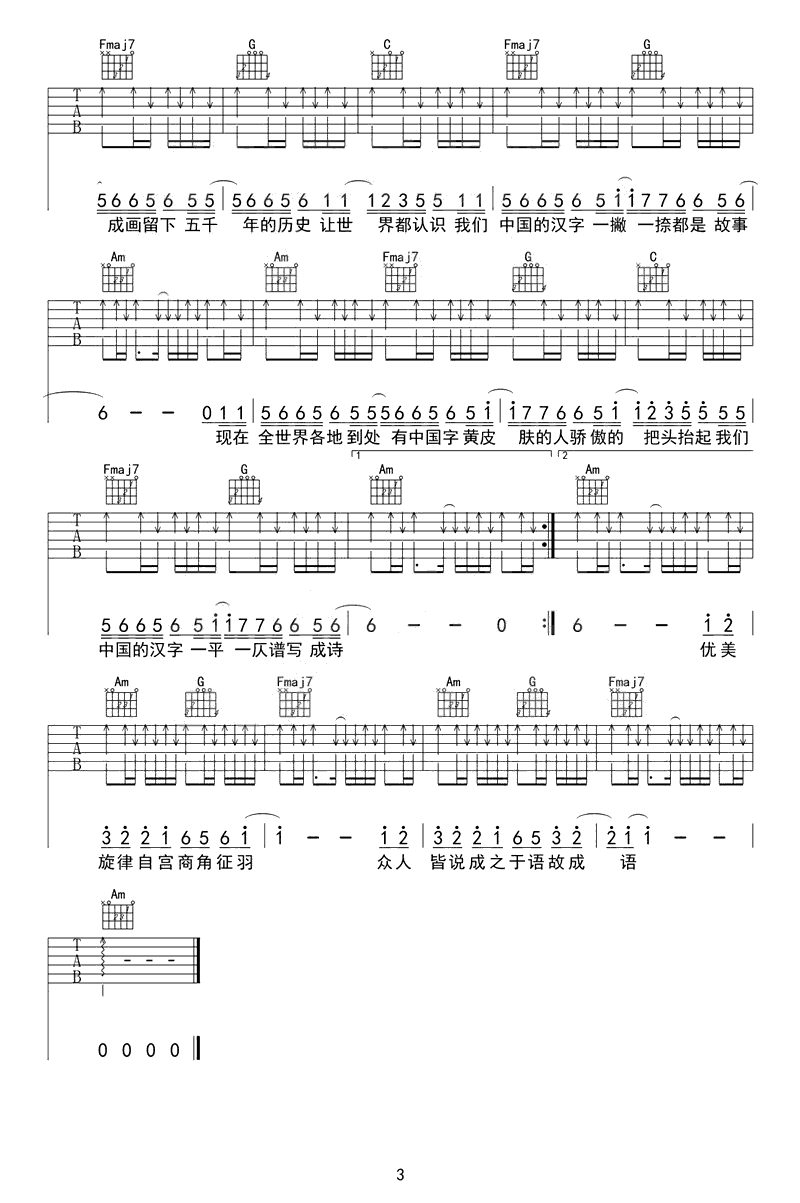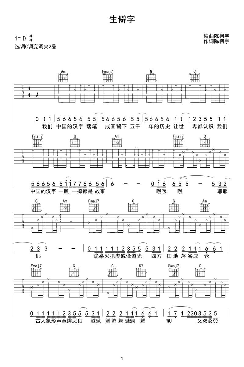 吉他谱 | 热门弹唱《生僻字》