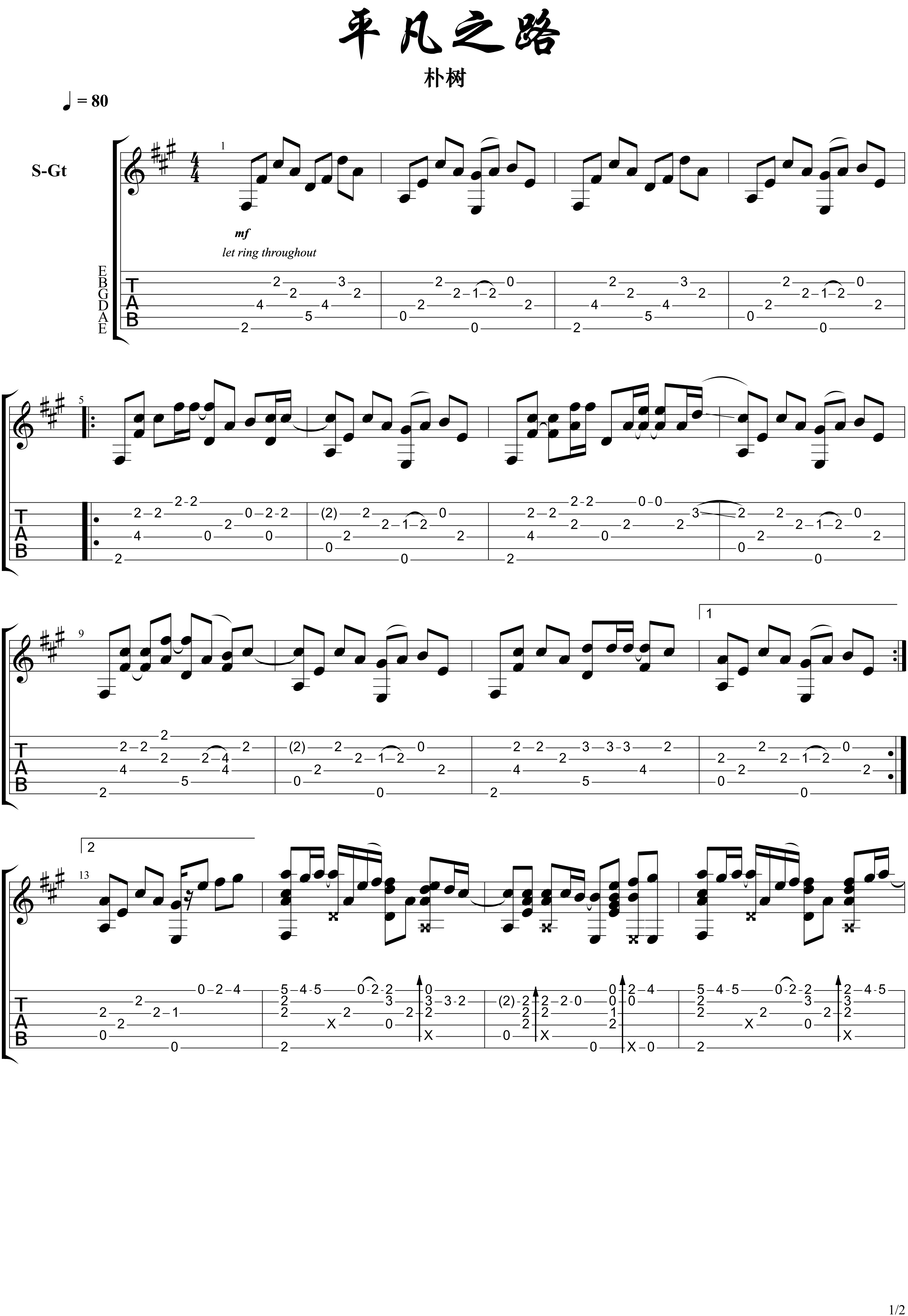 吉他谱 | 经典指弹《平凡之路》