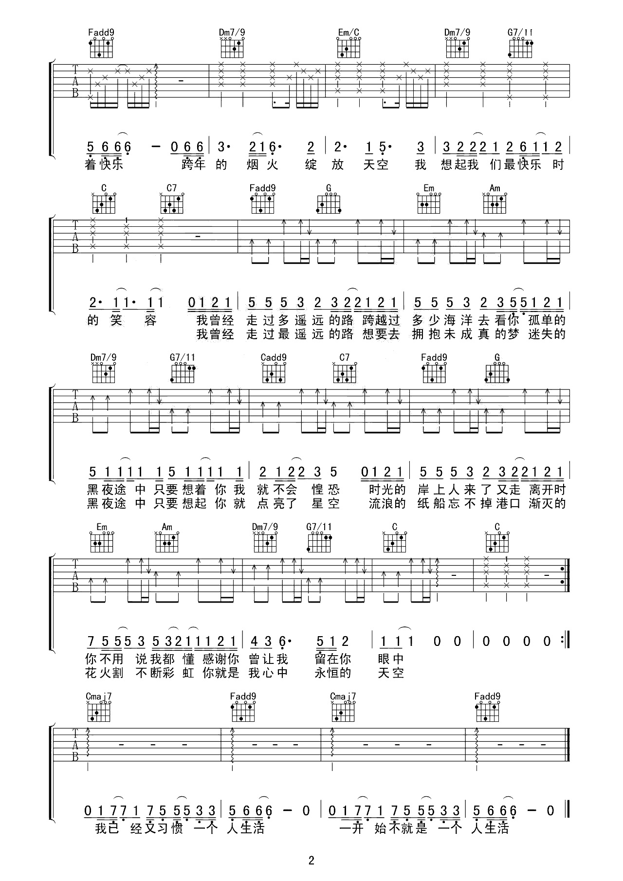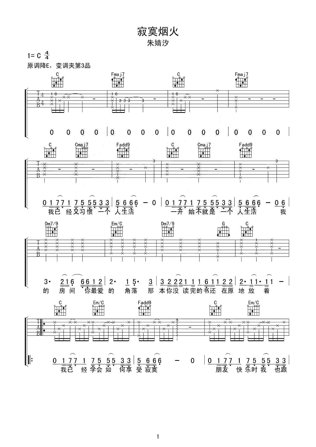 吉他谱 | 热门弹唱《寂寞烟火》