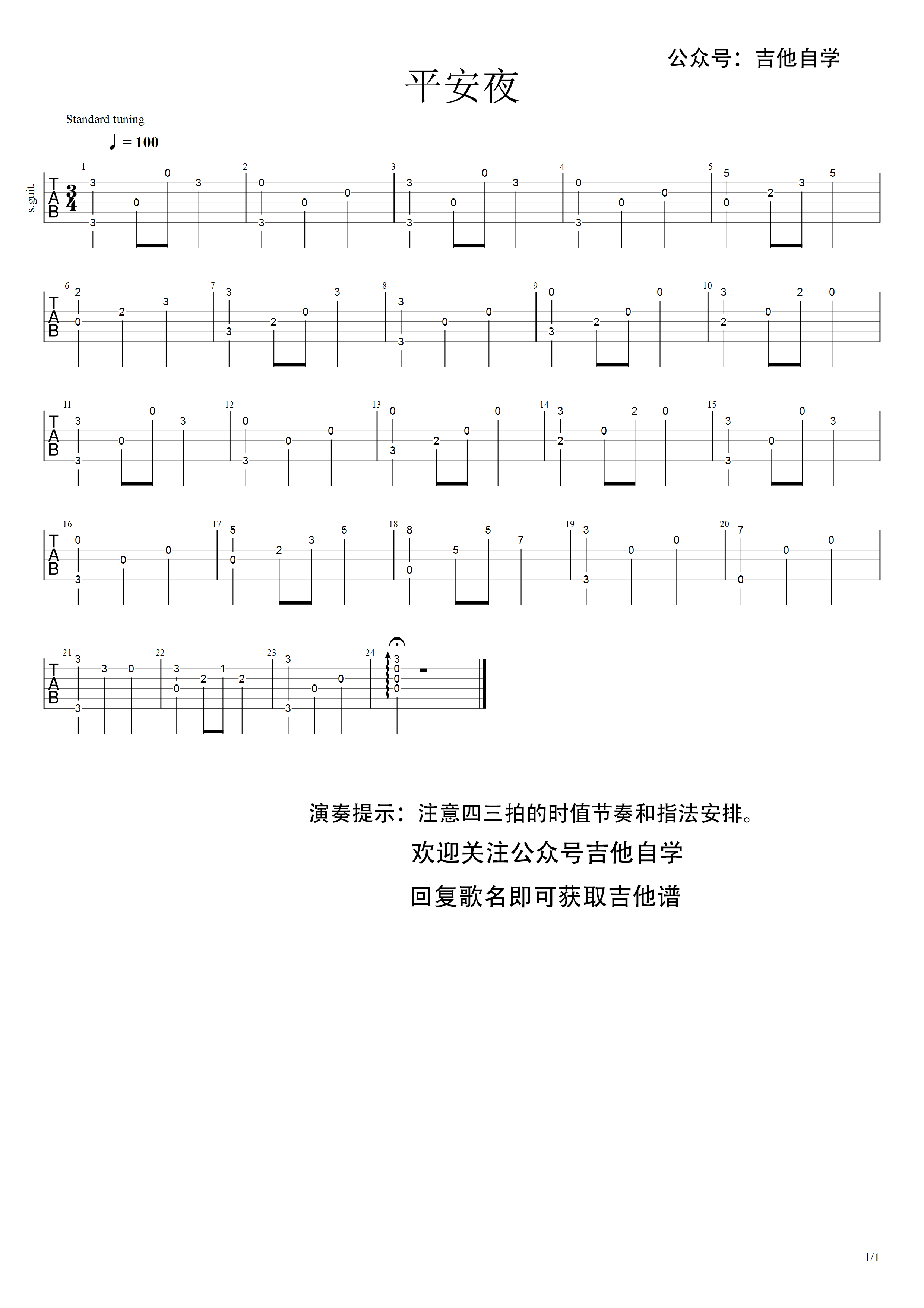 吉他谱 | 经典指弹《平安夜》