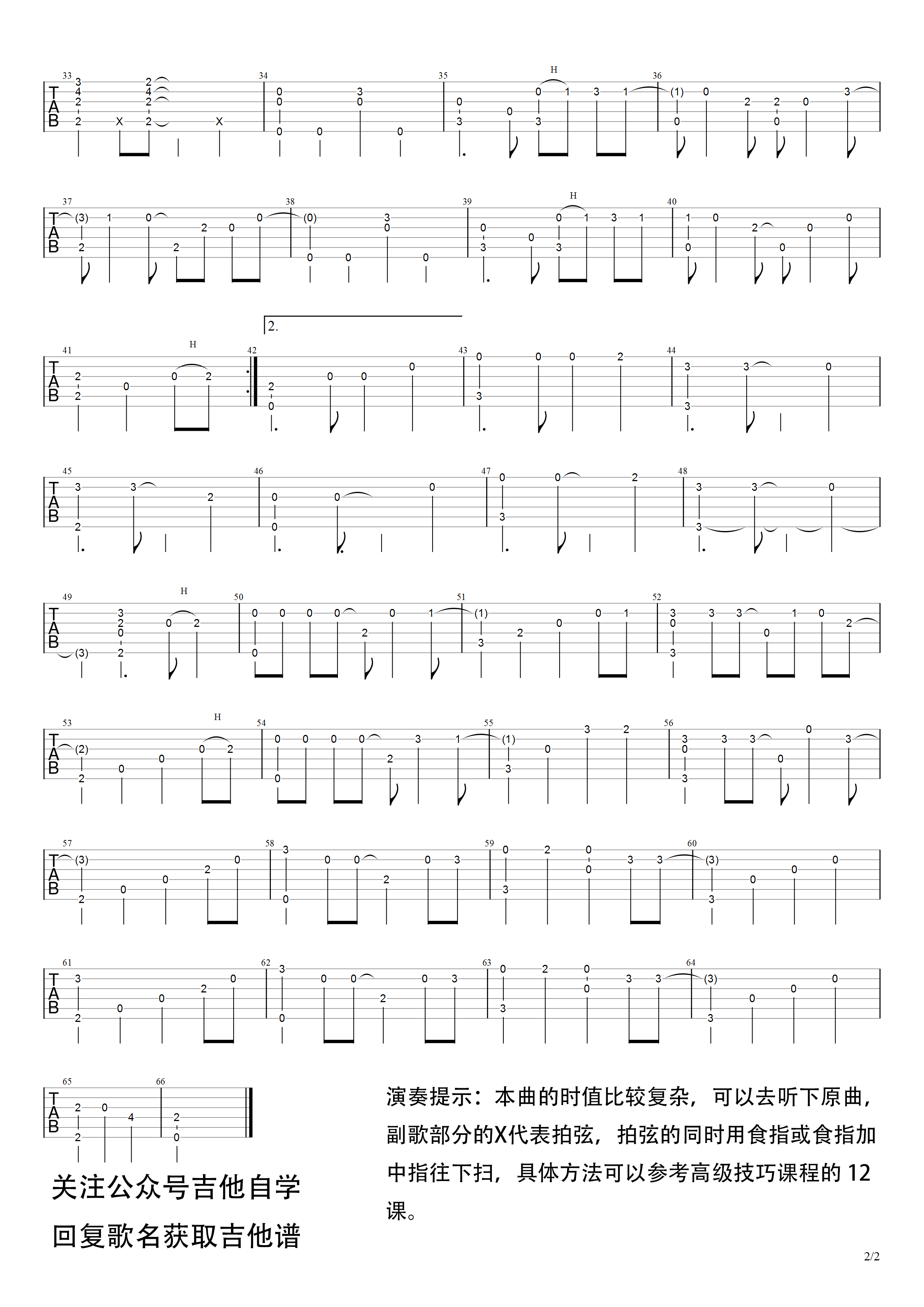 七里香指弹谱_周杰伦_吉他独奏谱_指弹