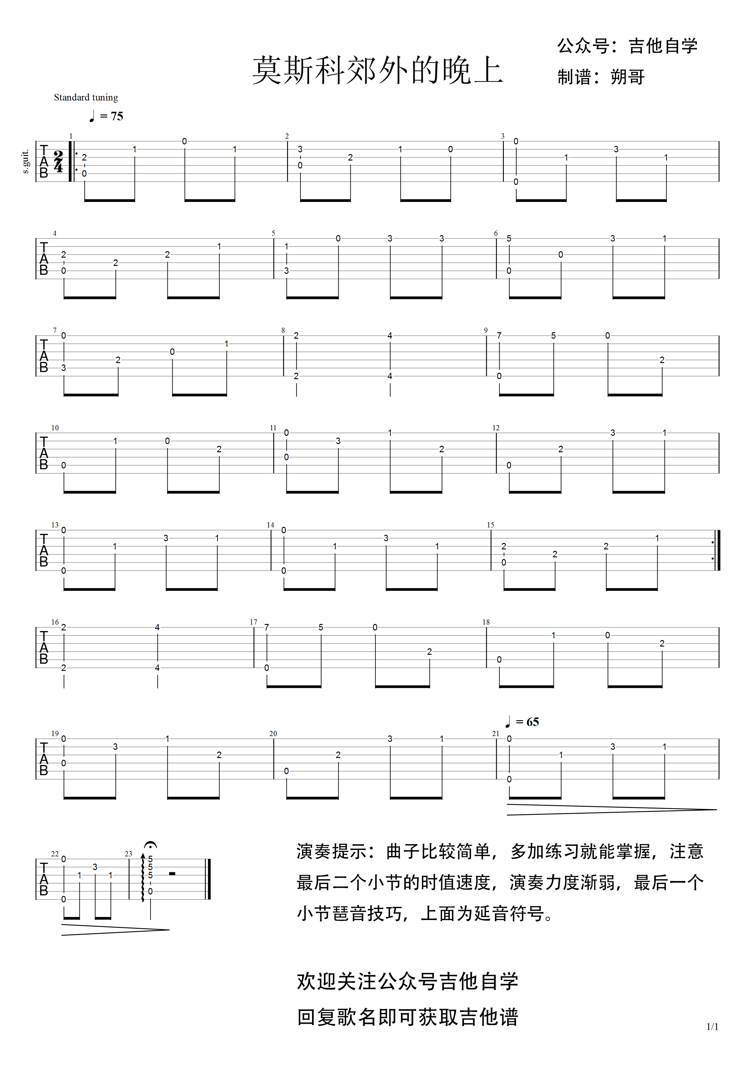 吉他谱 | 经典指弹《莫斯科郊外的晚上》