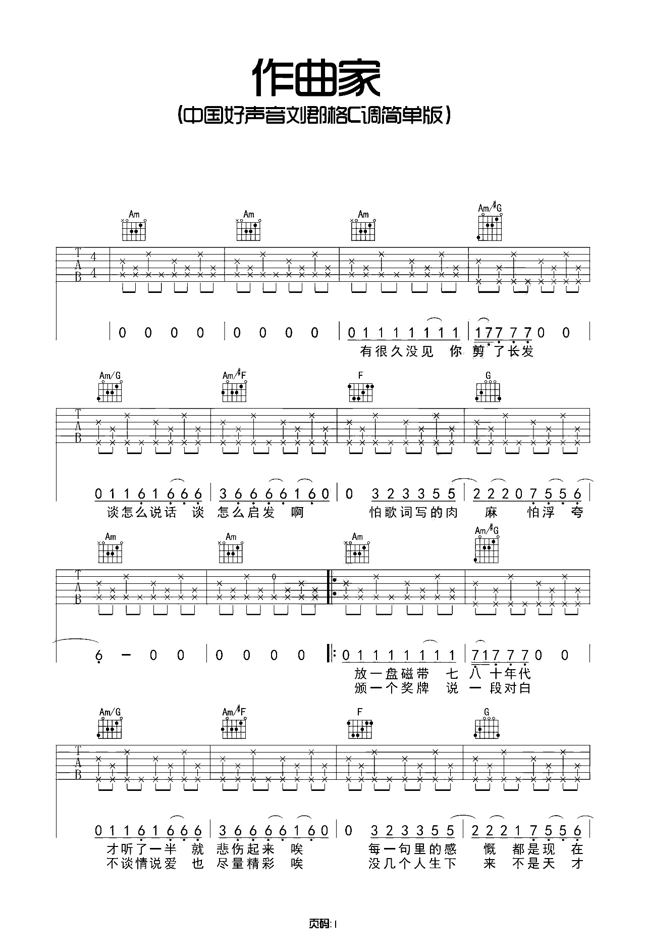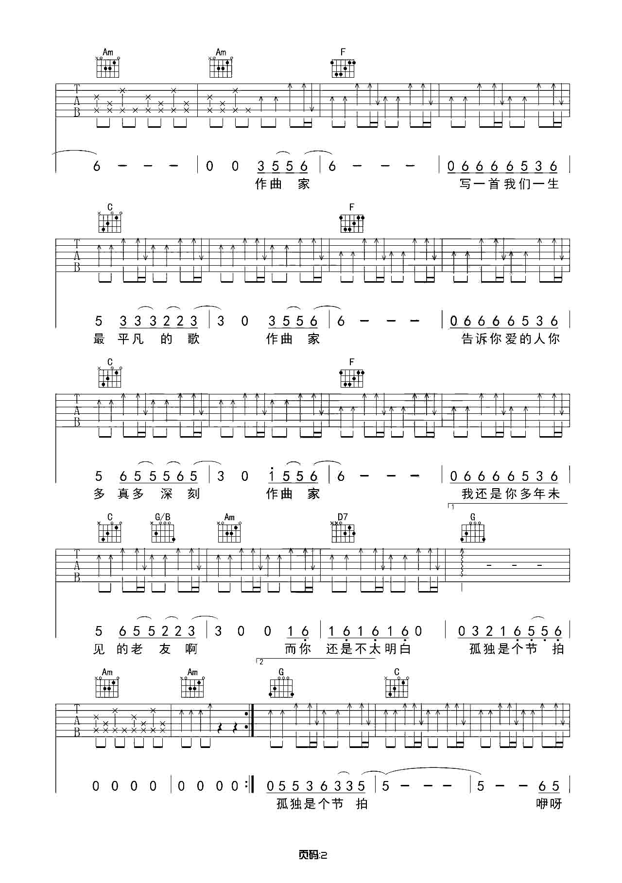 吉他谱 | 热门弹唱《作曲家》
