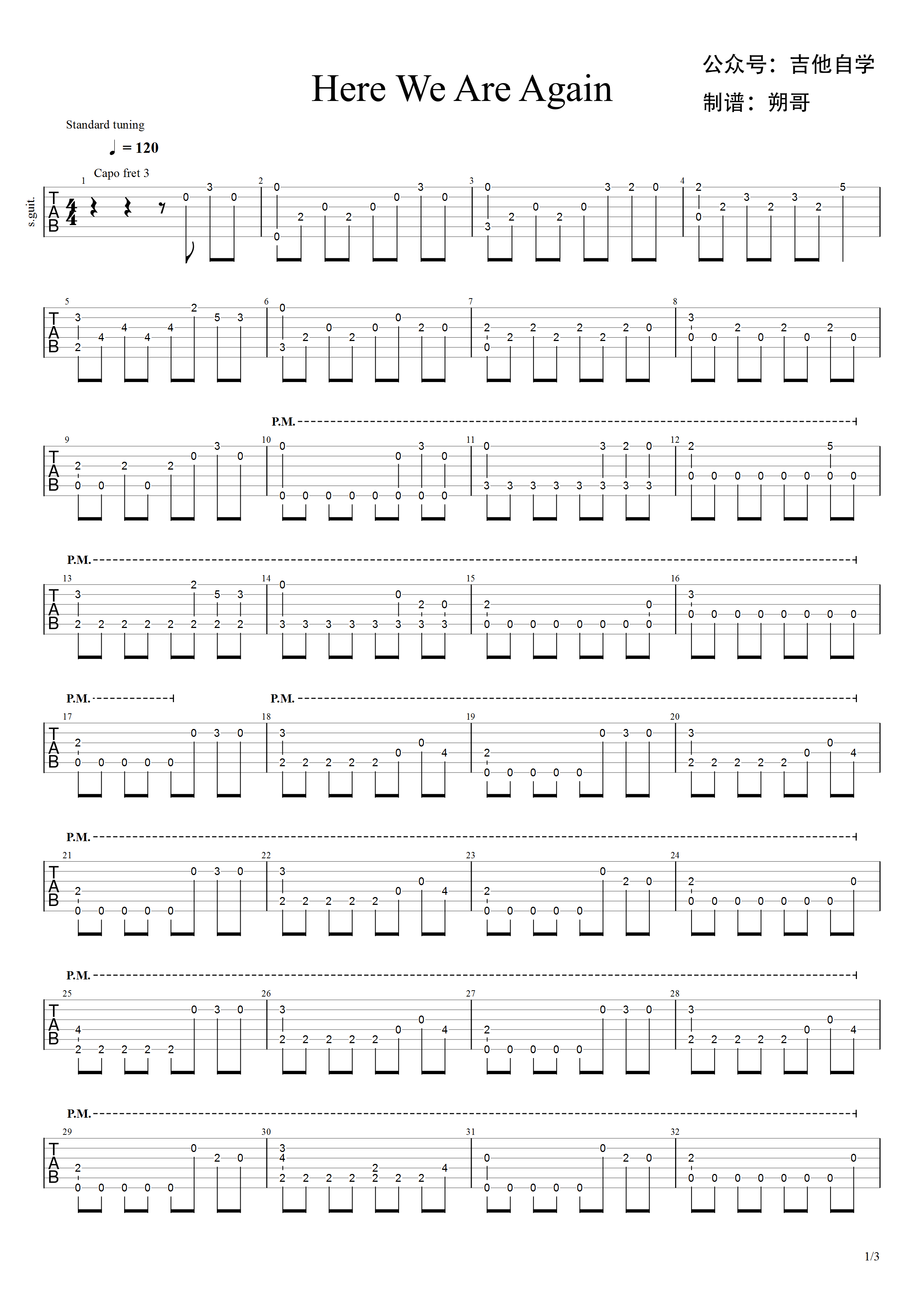 吉他谱 | 经典指弹《Here We Are Again》