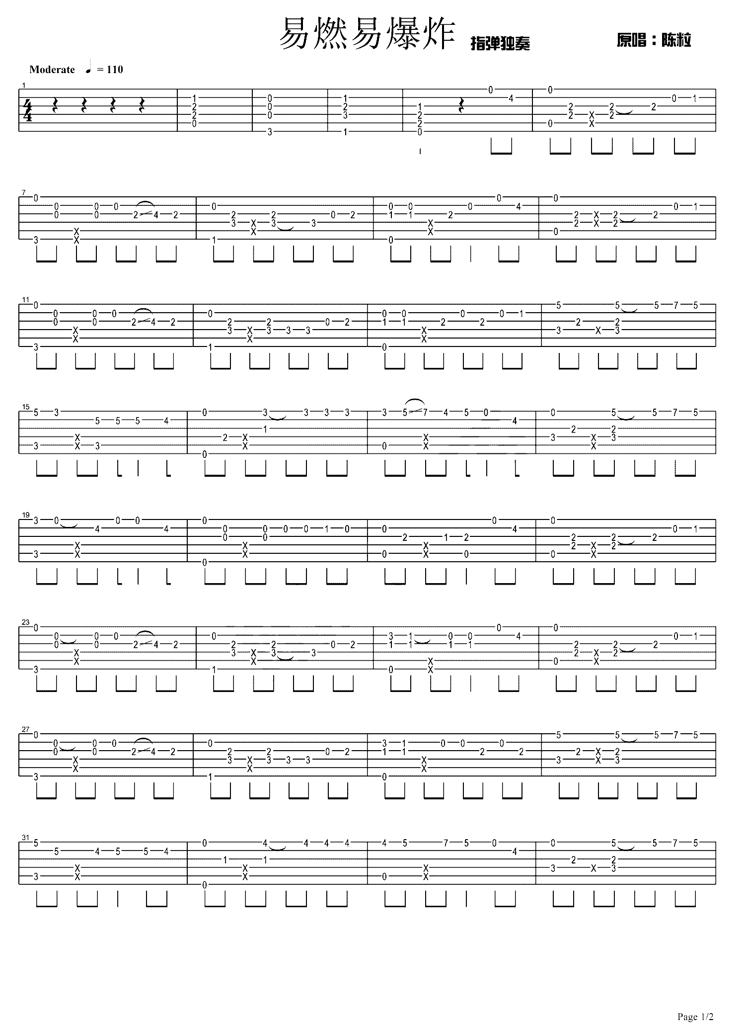 吉他谱 | 经典指弹《易燃易爆炸》