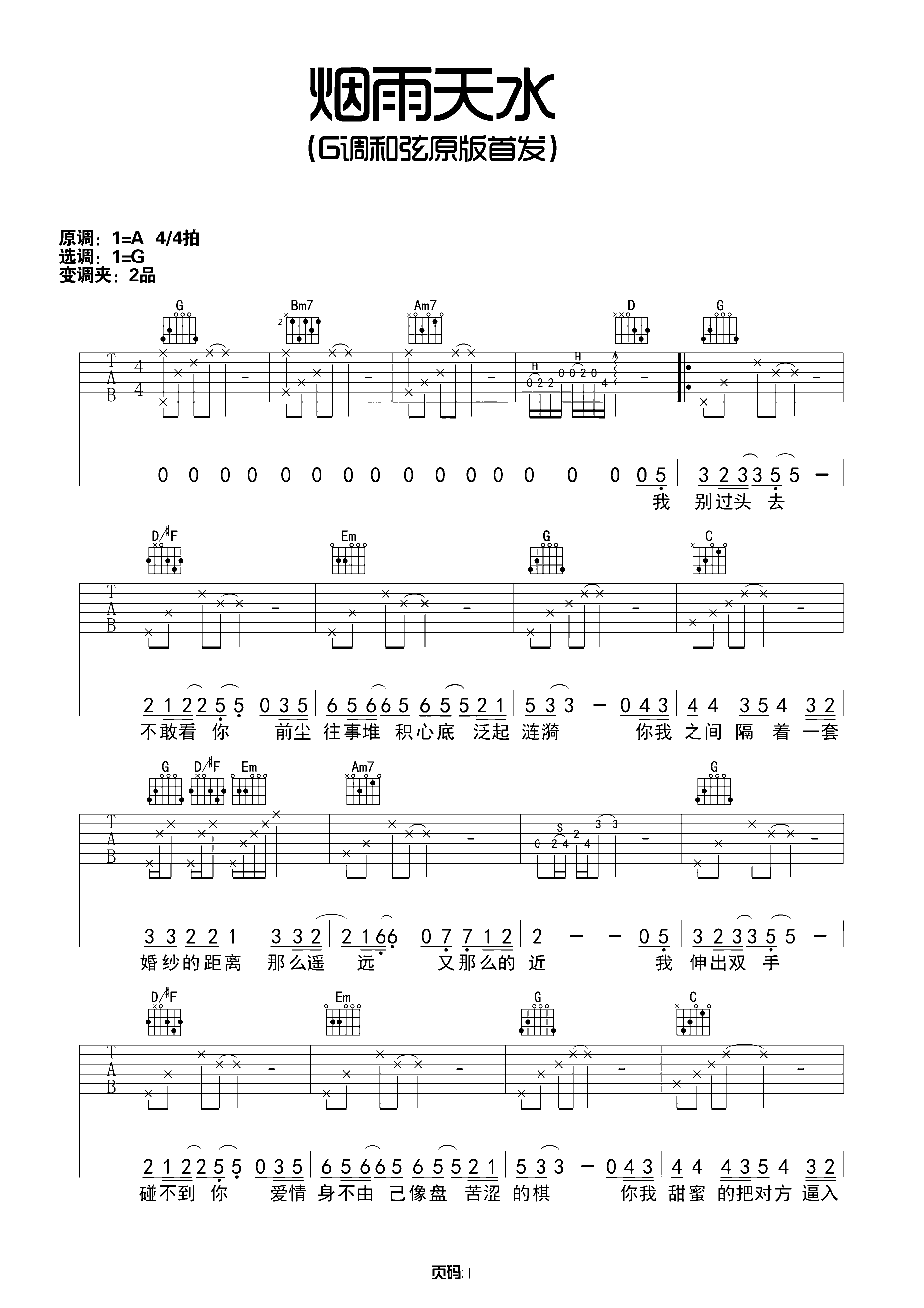 吉他谱 | 热门弹唱《烟雨天水》