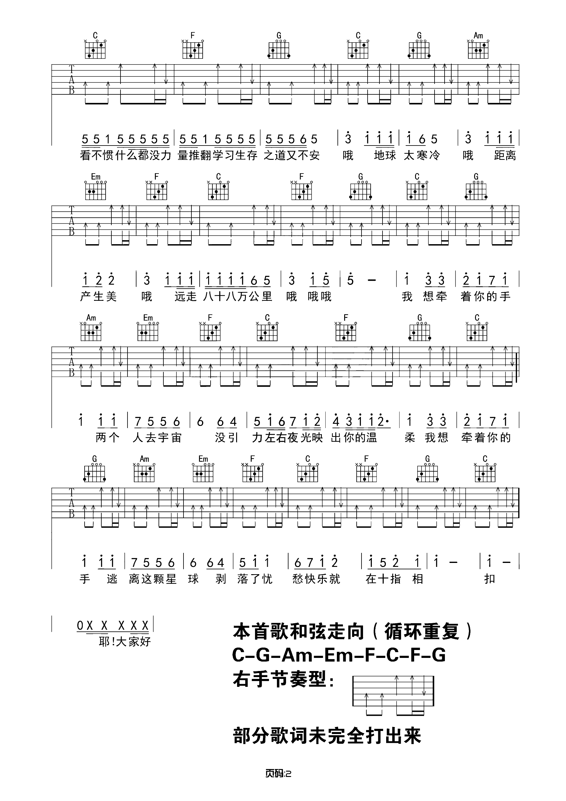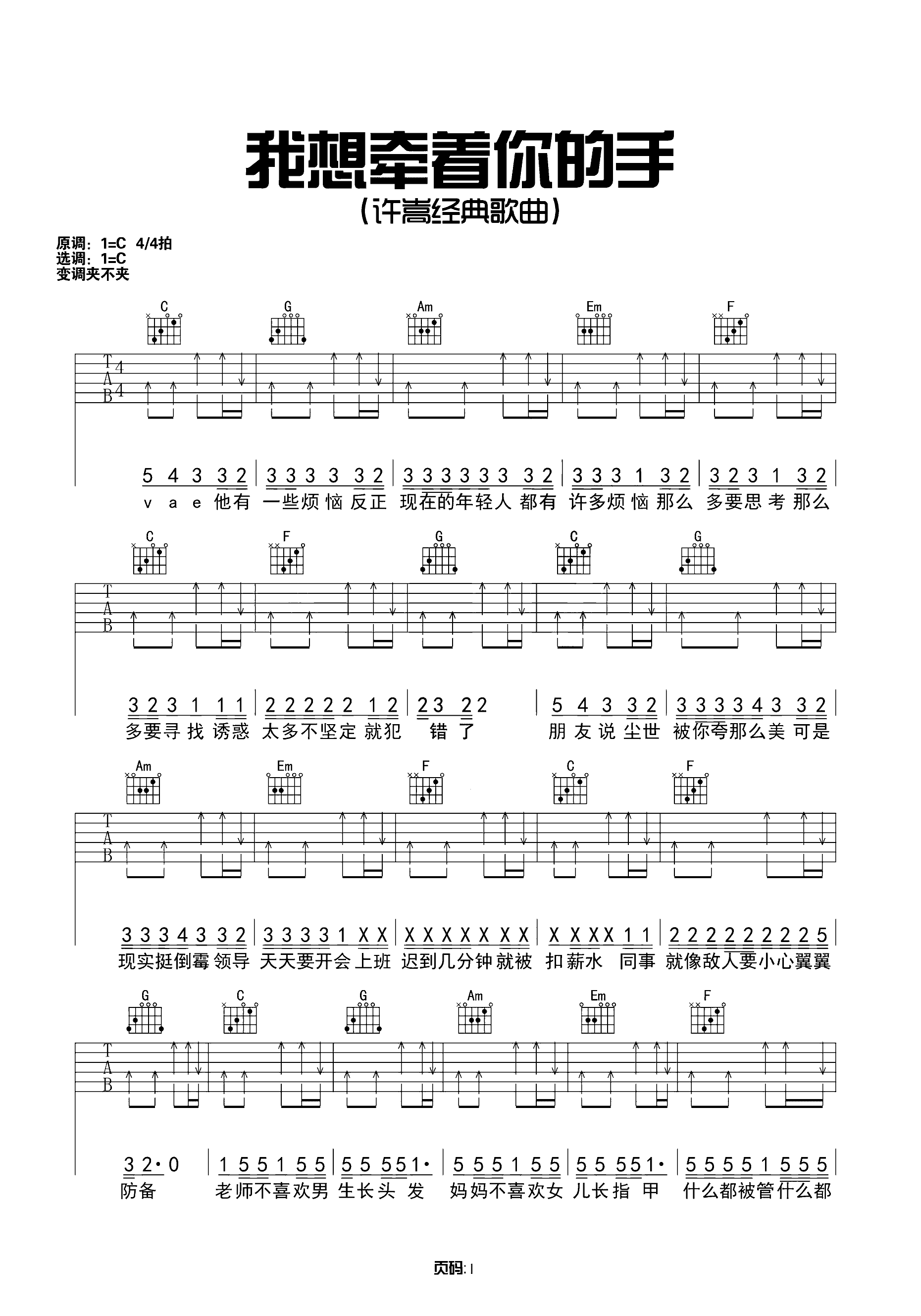 吉他谱 | 热门弹唱《我想牵着你的手》