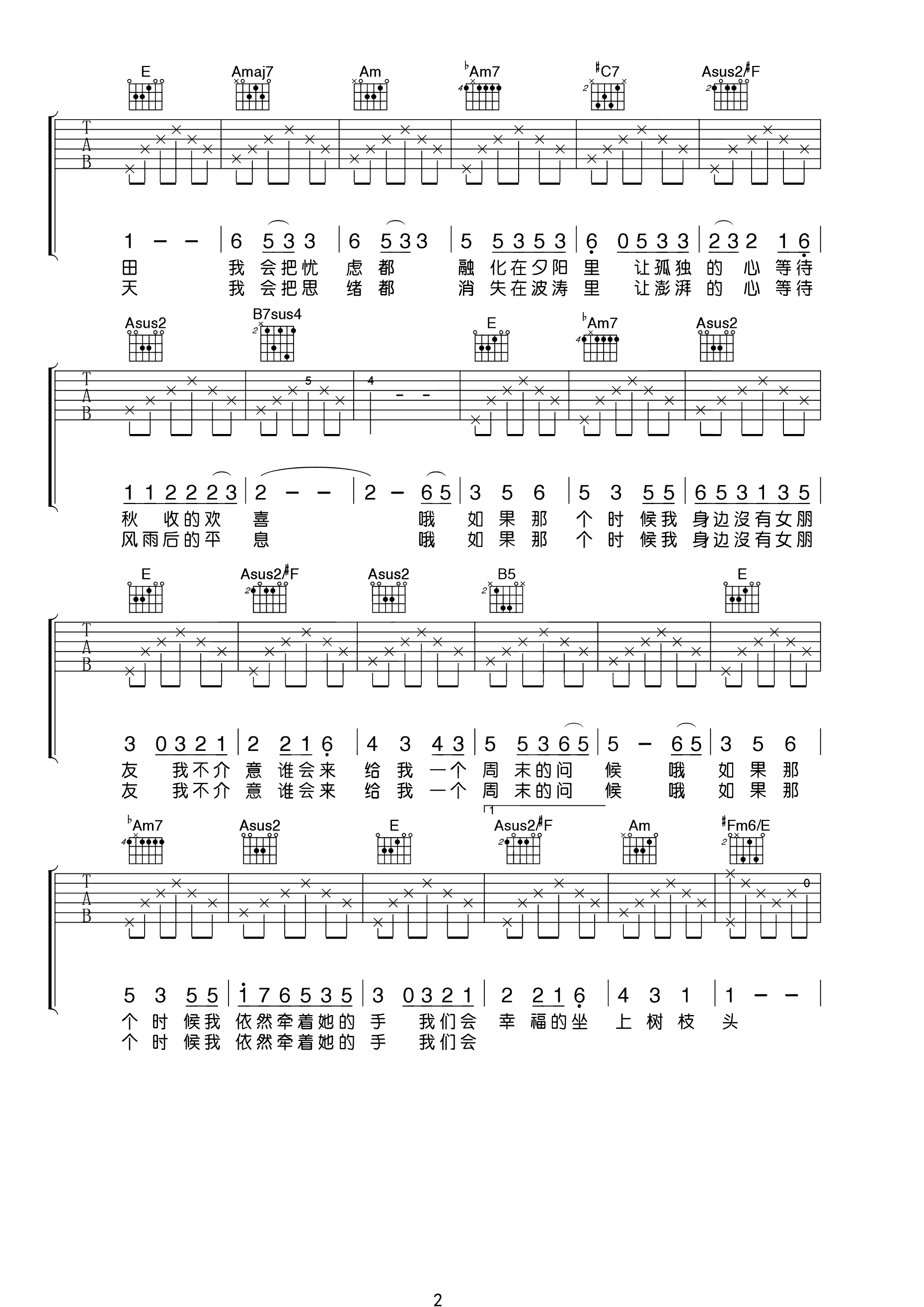 吉他谱 | 热门弹唱《农夫渔夫》