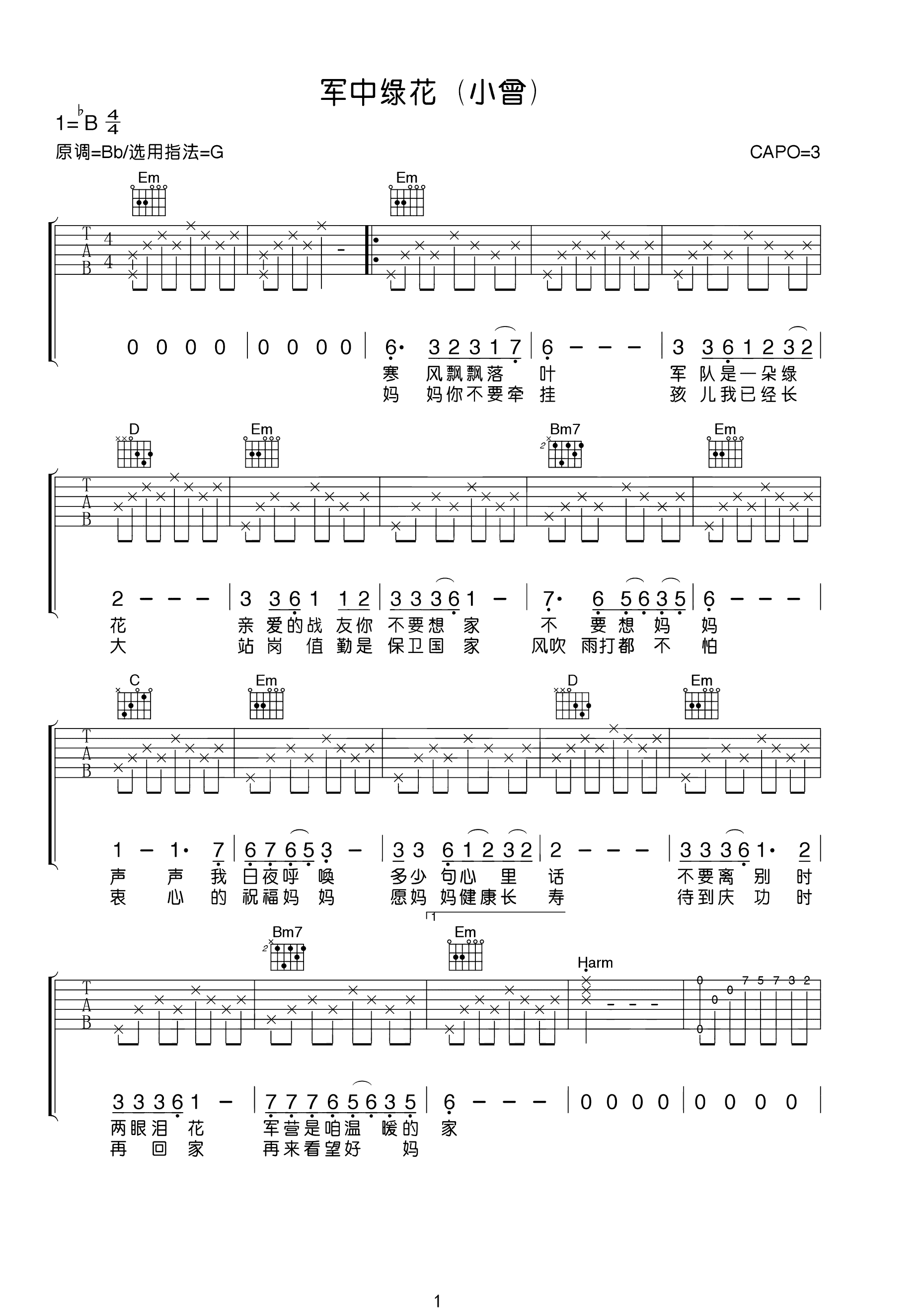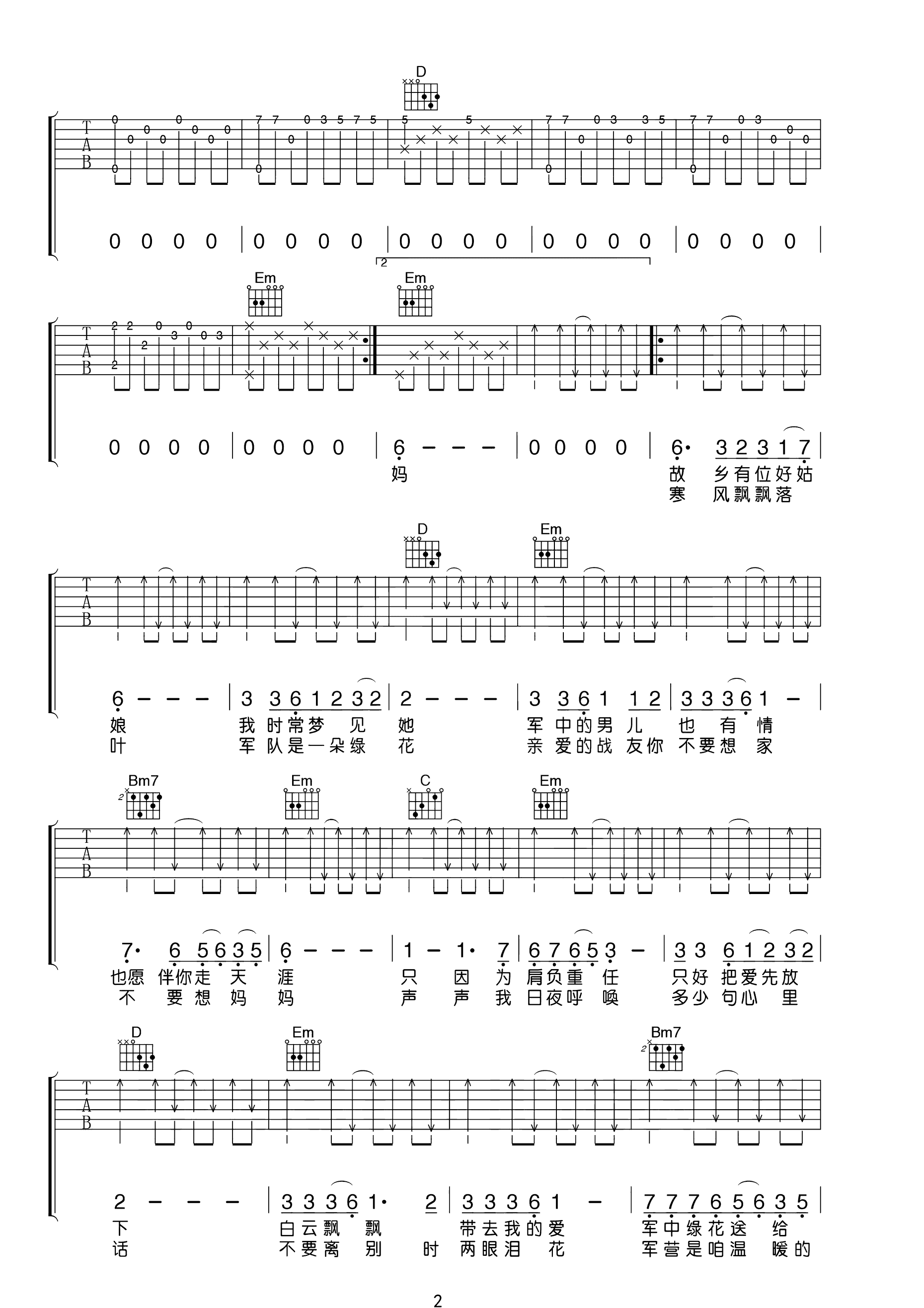 吉他谱 | 热门弹唱《军中绿花》