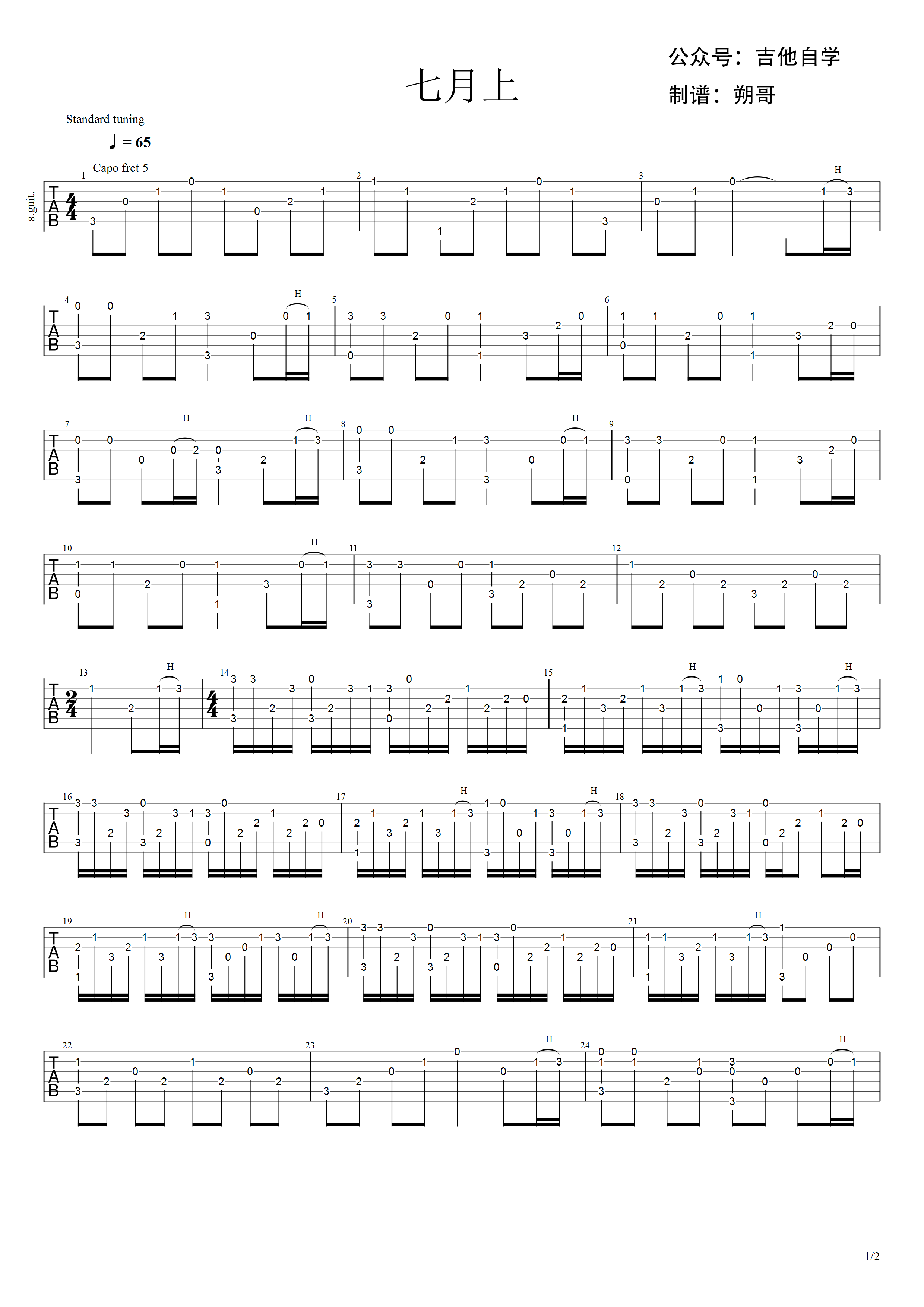 吉他谱 | 经典指弹《七月上》