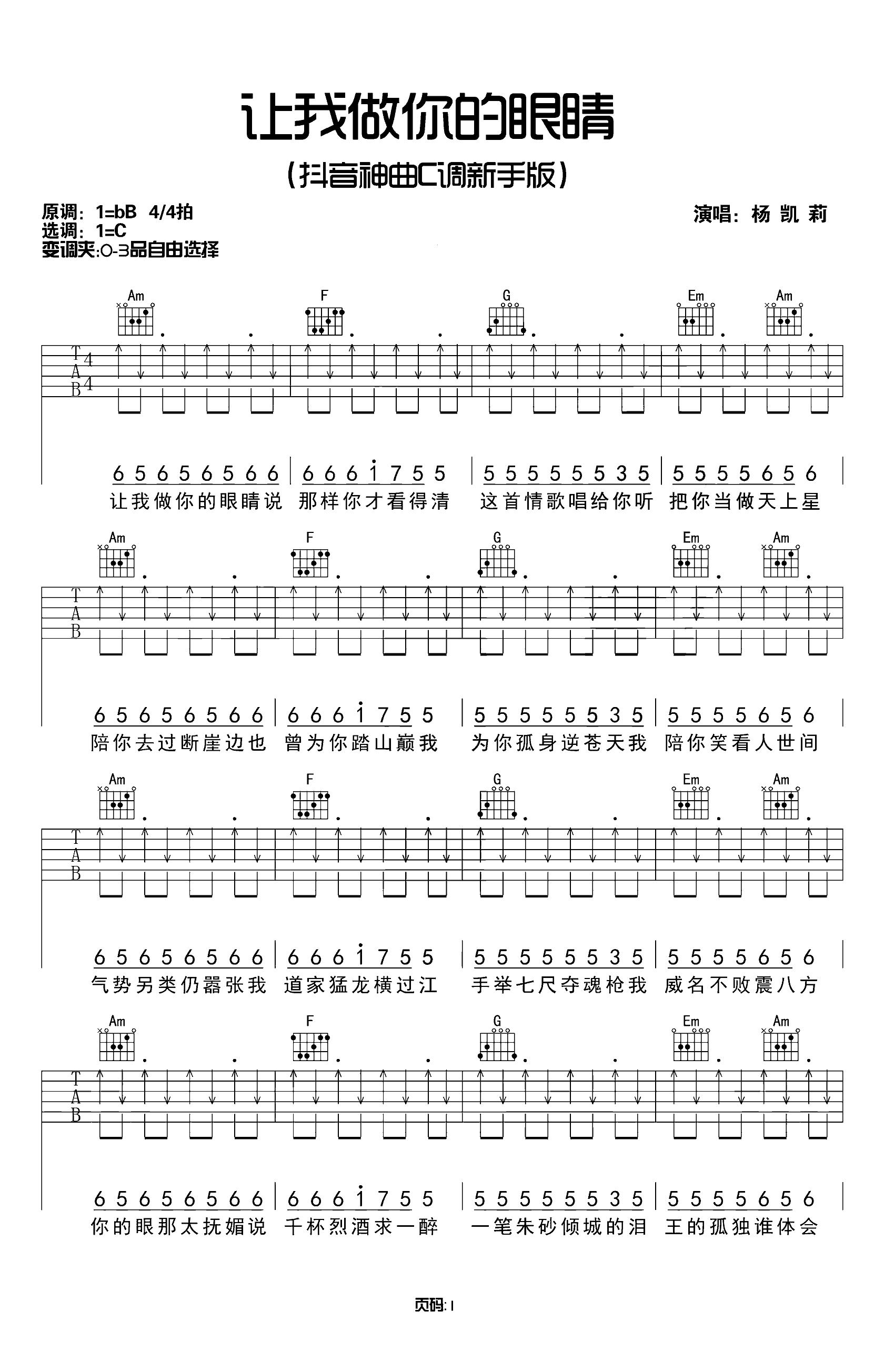 吉他谱 | 热门弹唱《让我做你的眼睛》