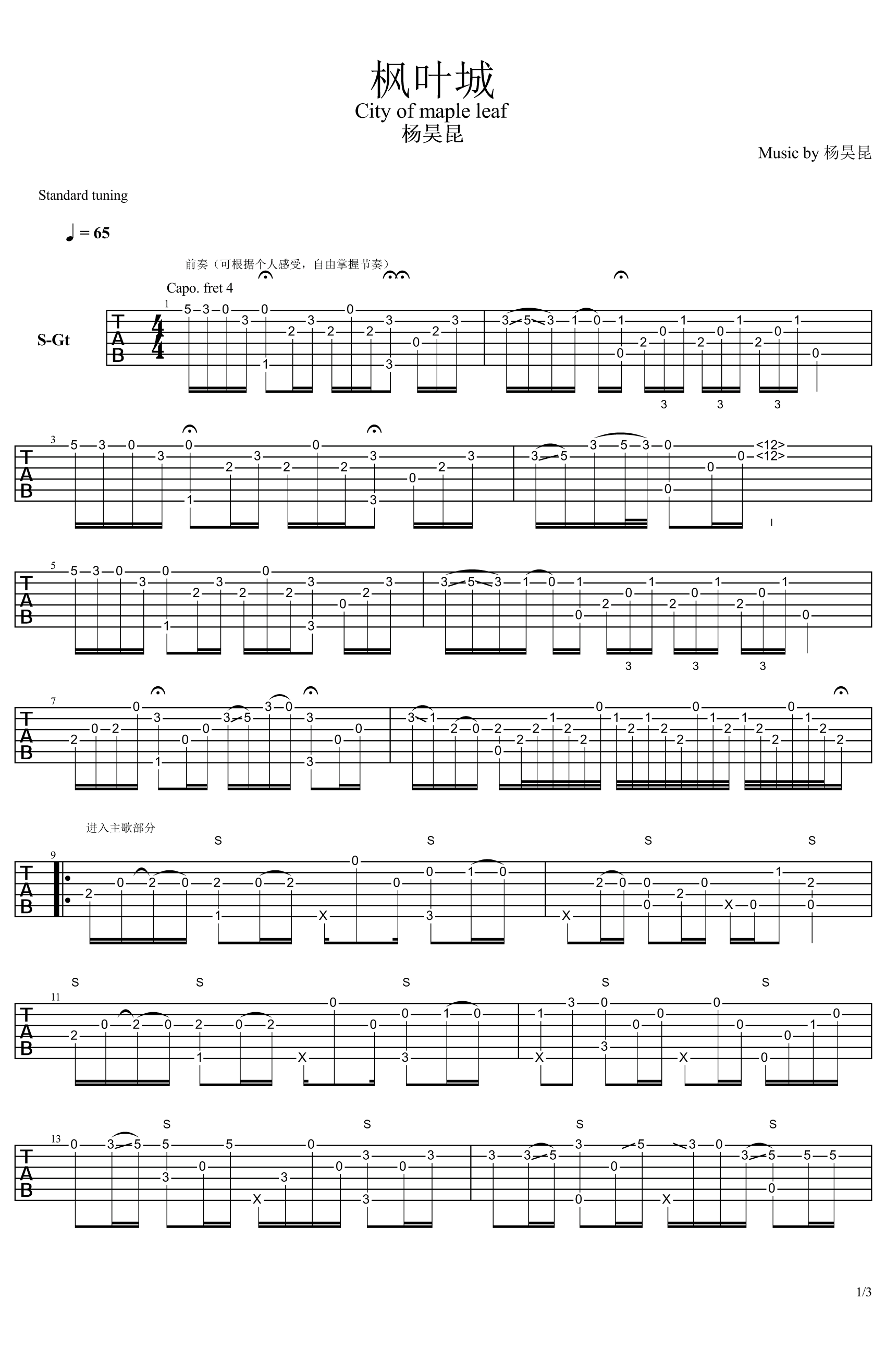 吉他谱 | 经典指弹《枫叶城》