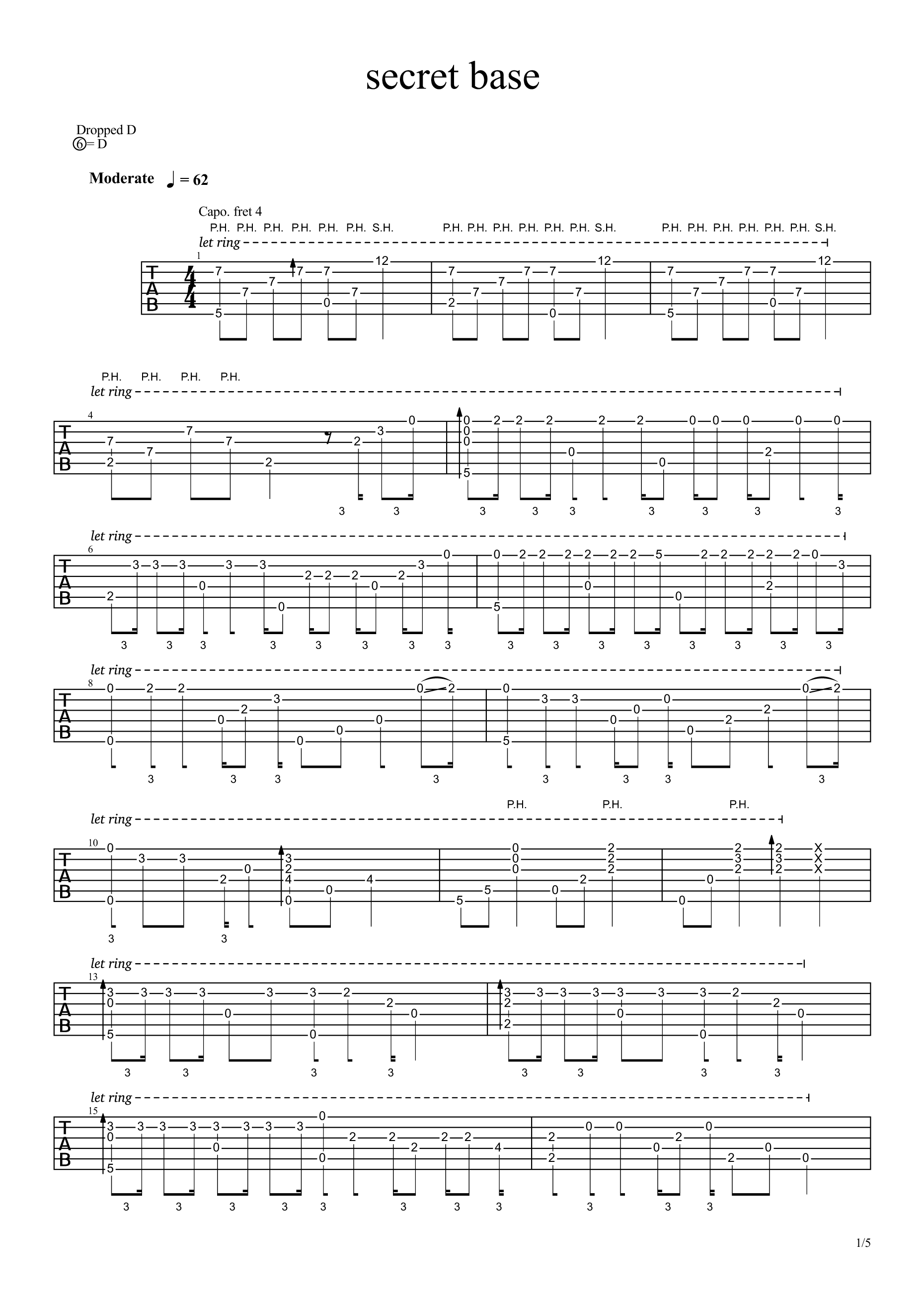 吉他谱 | 经典指弹《secret base》