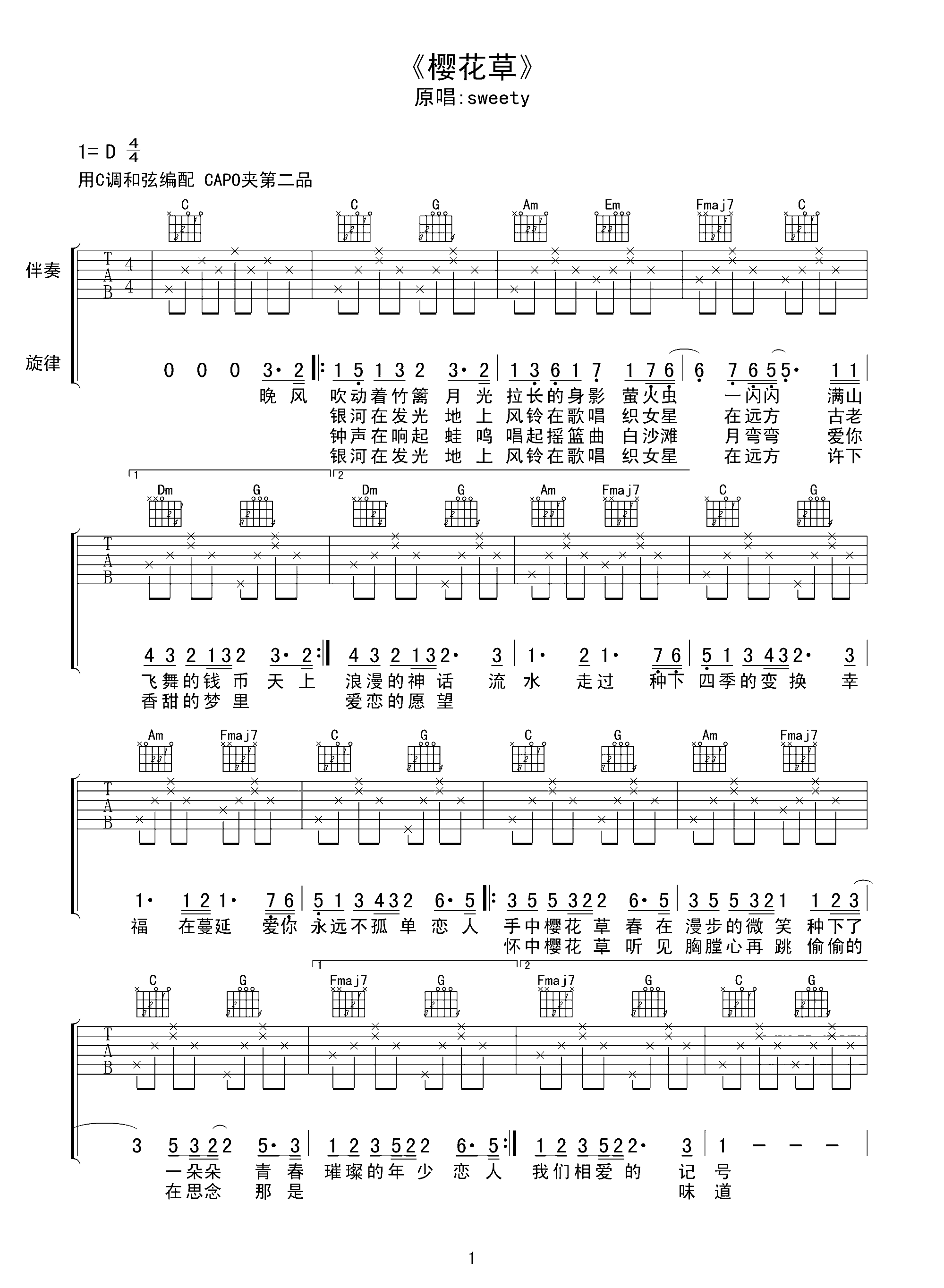 吉他谱 | 热门弹唱《樱花草》