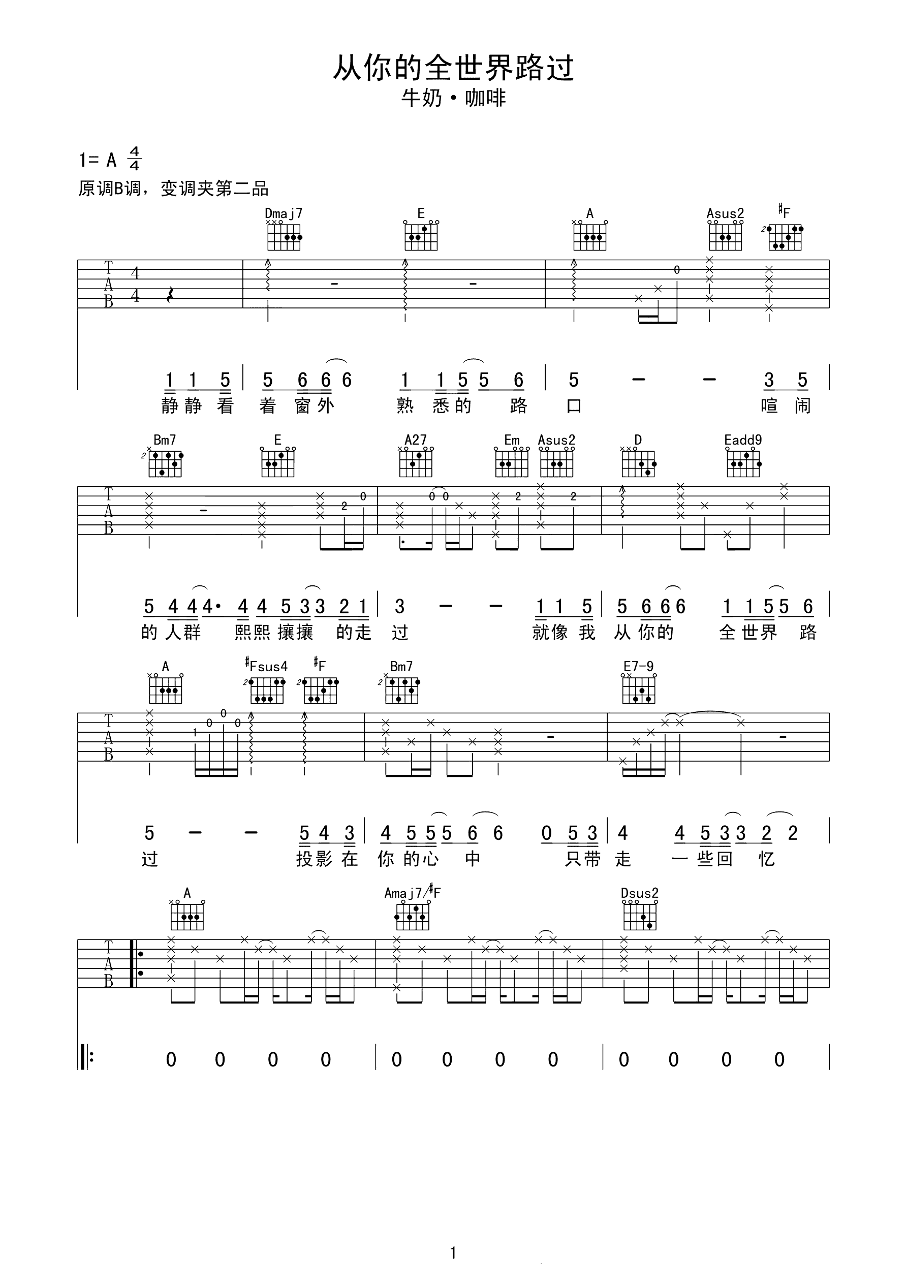 吉他谱 | 热门弹唱《从你的全世界路过》