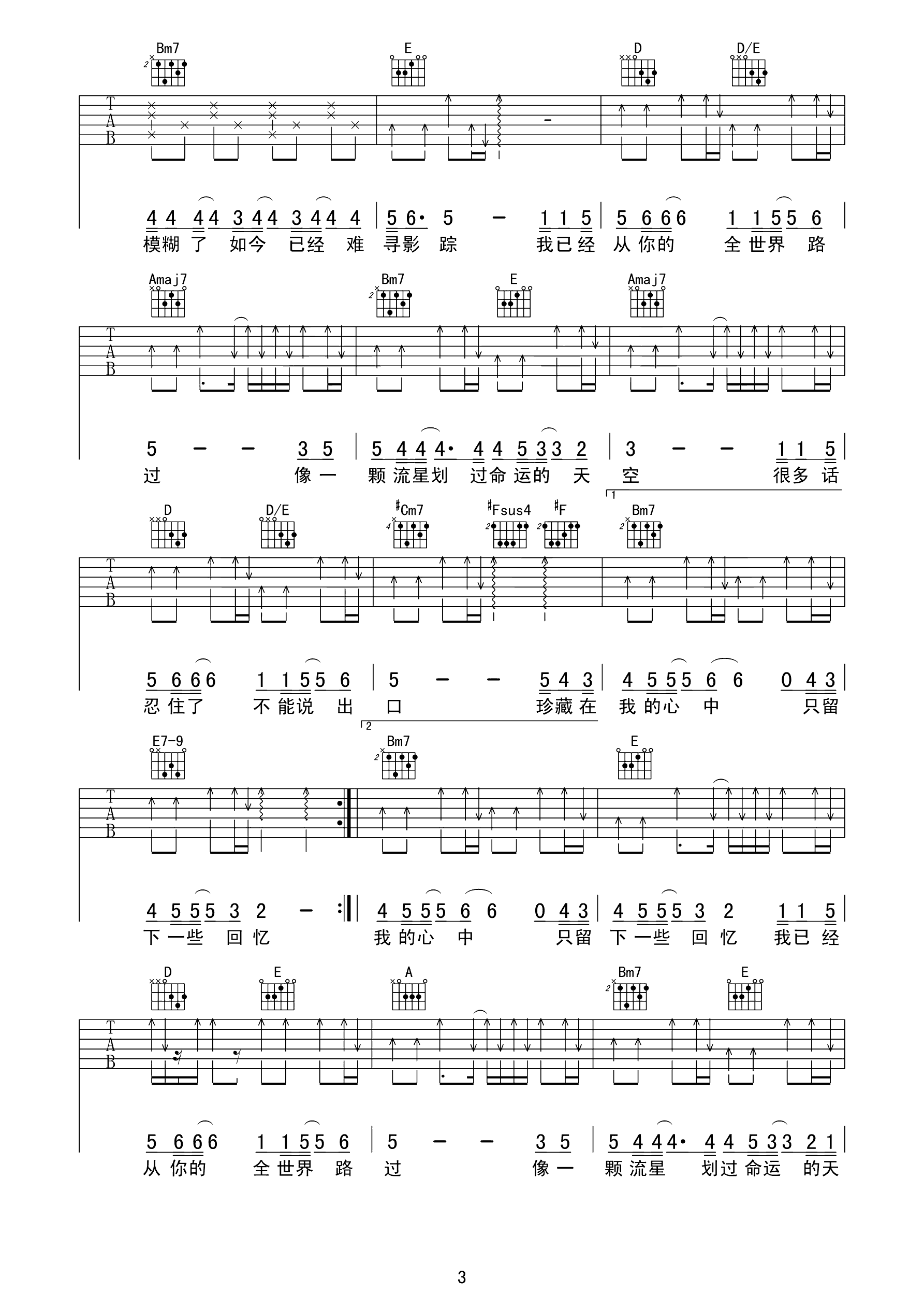 不再犹豫 完整版六线谱吉他谱