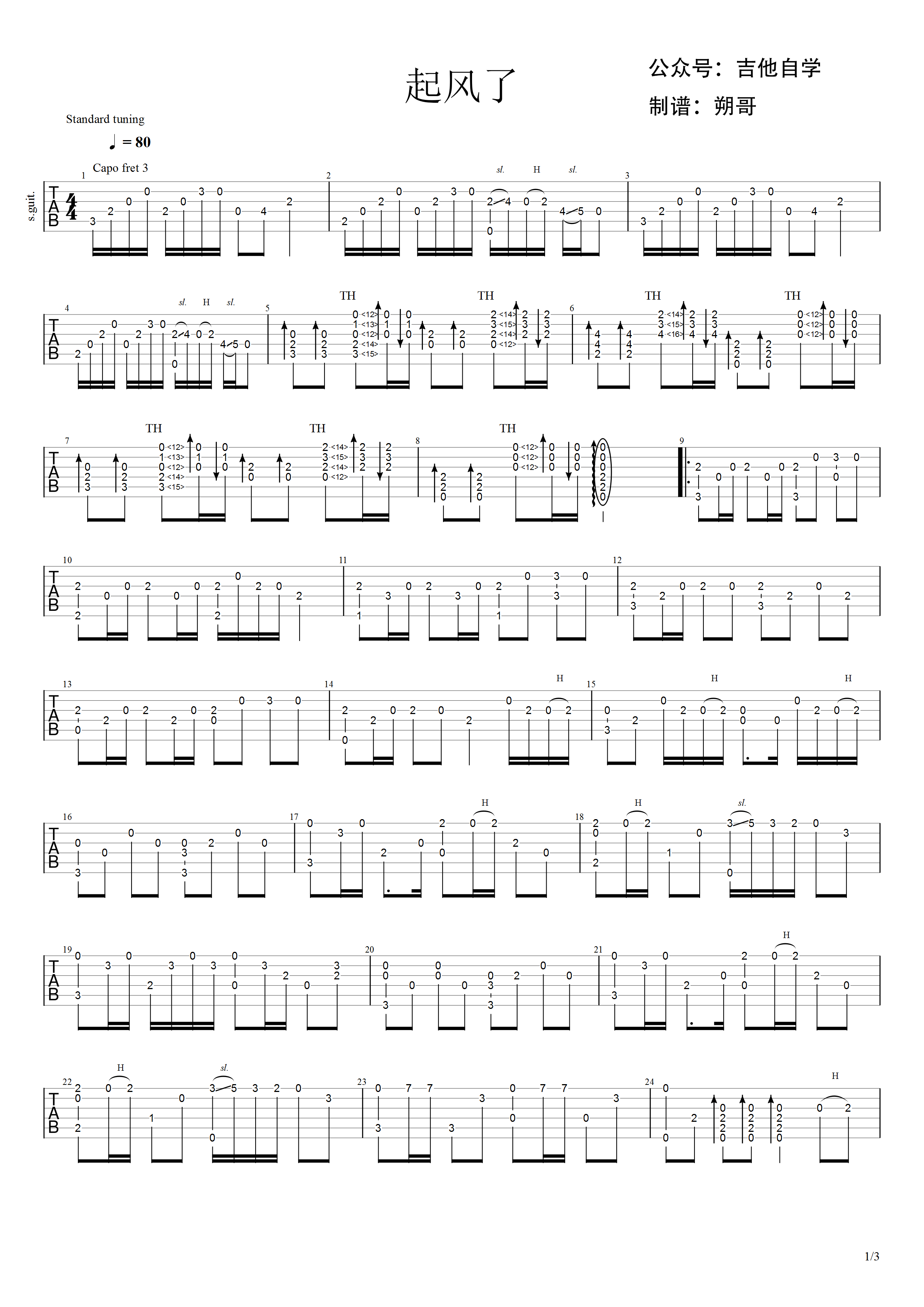 吉他谱 | 经典指弹《起风了》