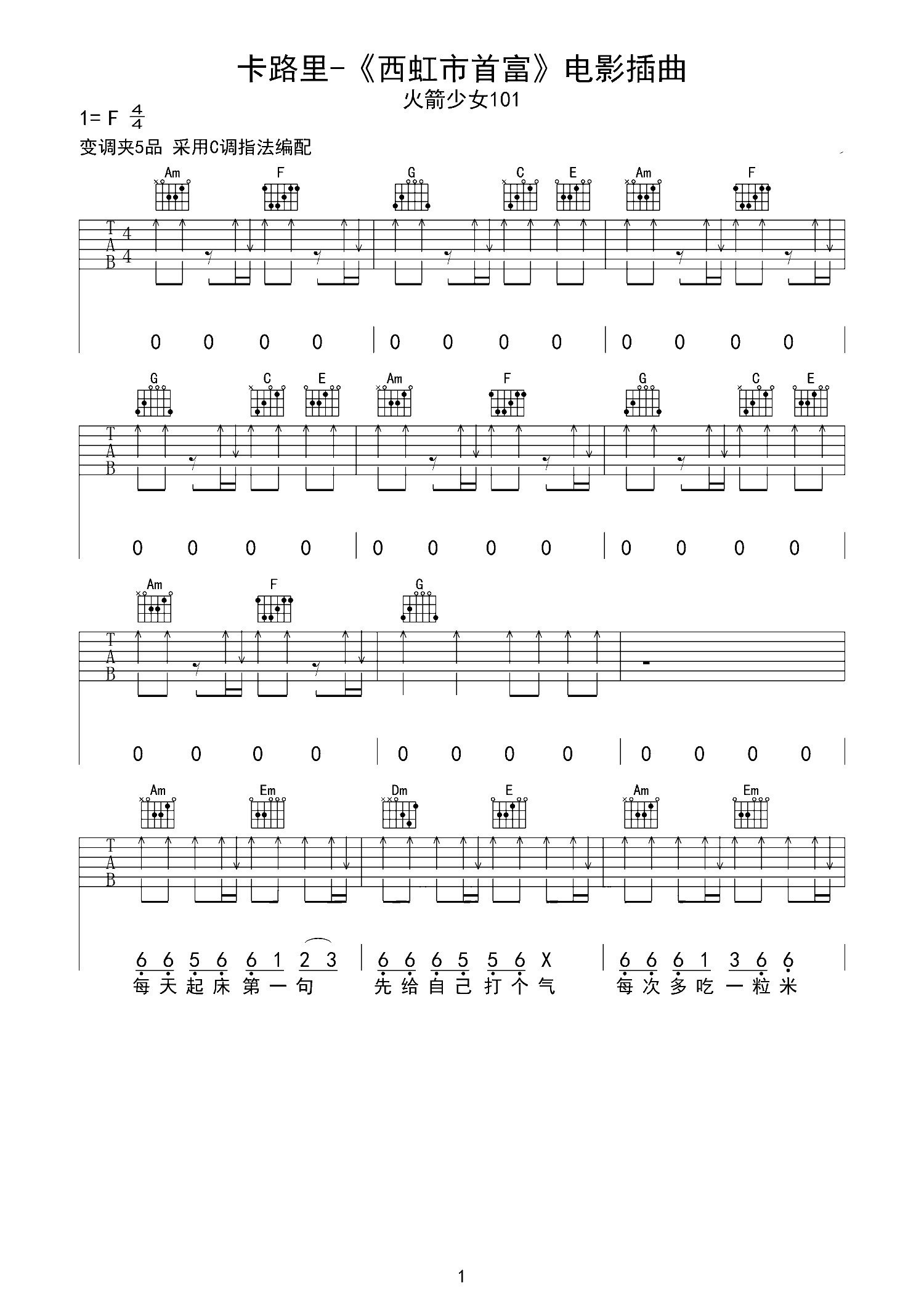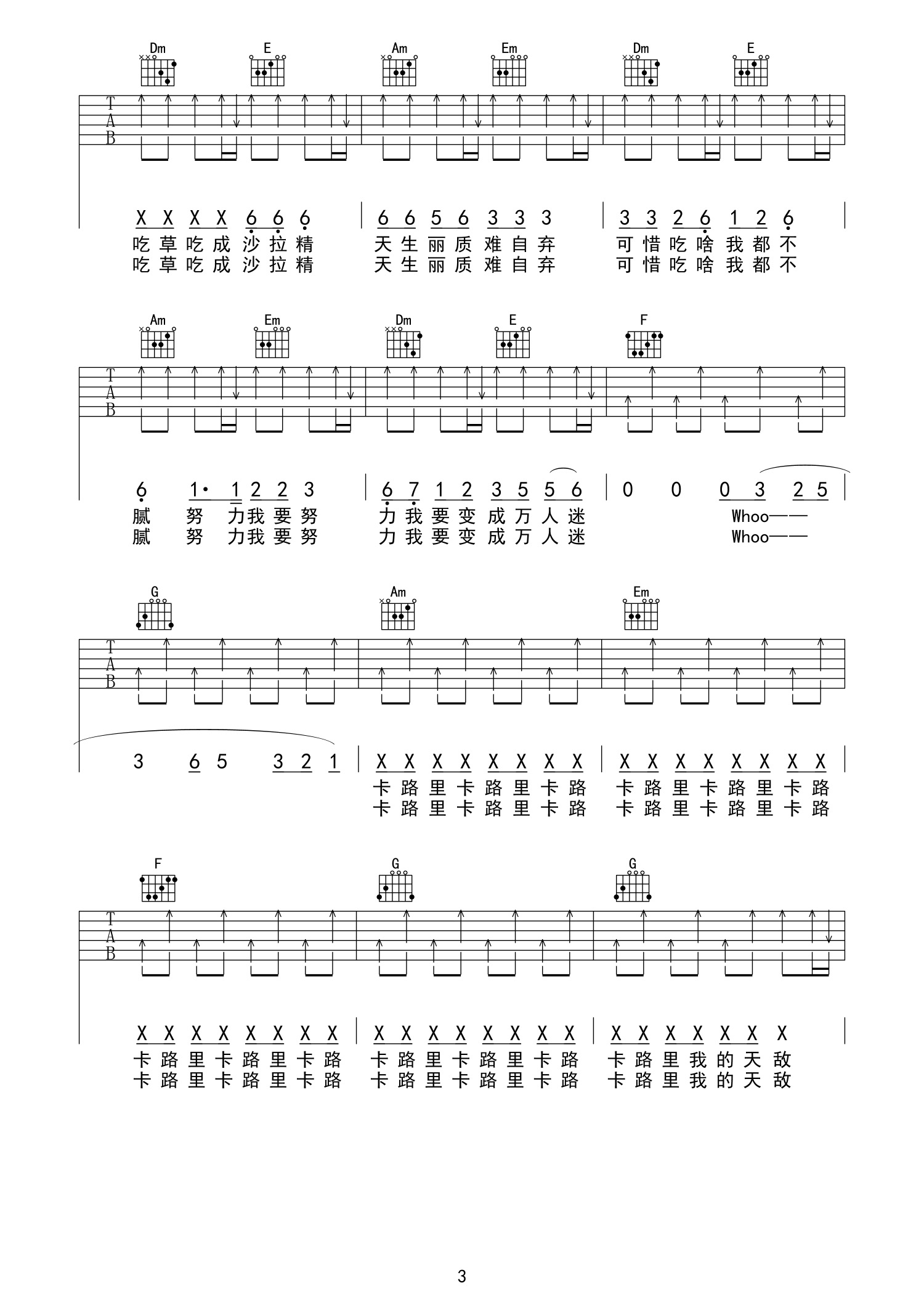 吉他谱 | 热门弹唱《卡路里》