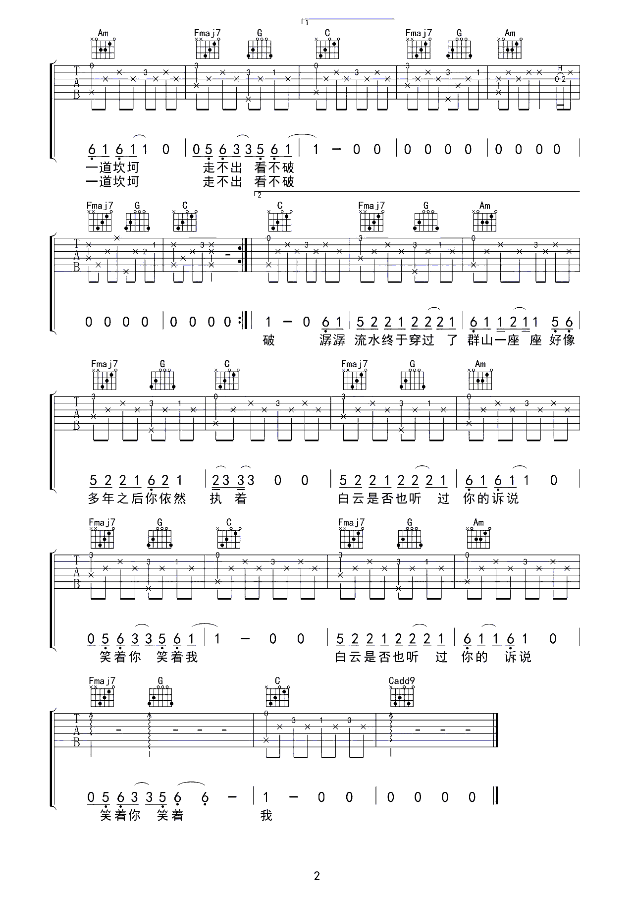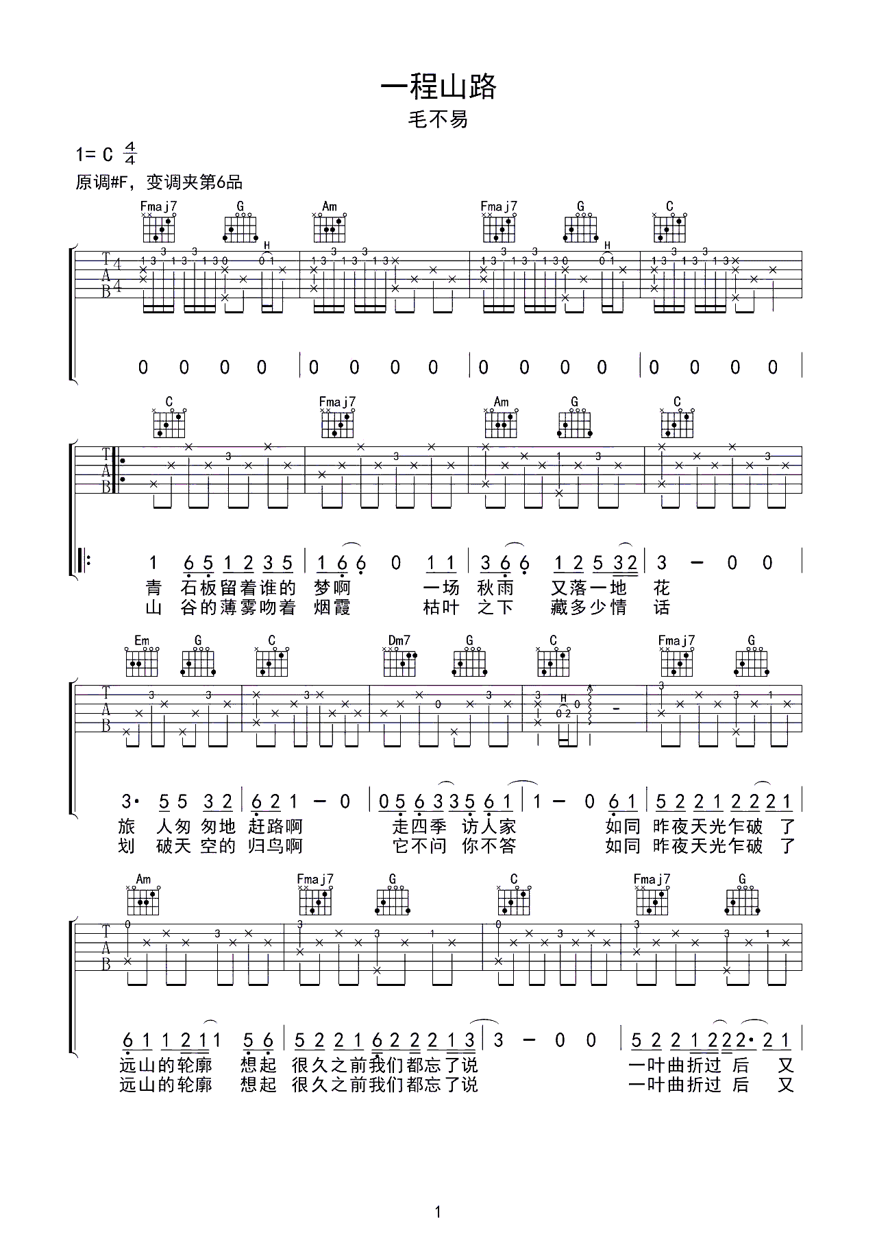 吉他谱 | 热门弹唱《一程山路》
