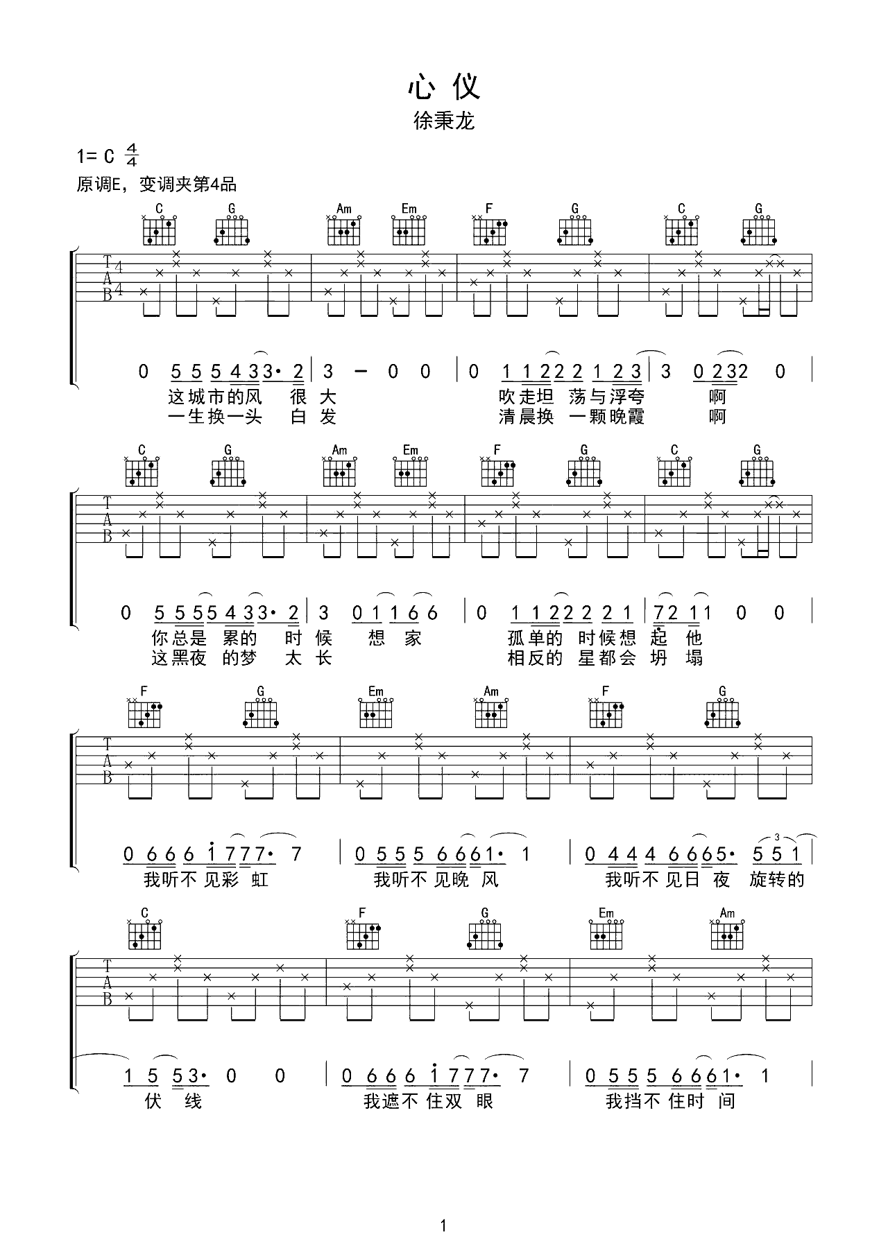 吉他谱 | 热门弹唱《心仪》