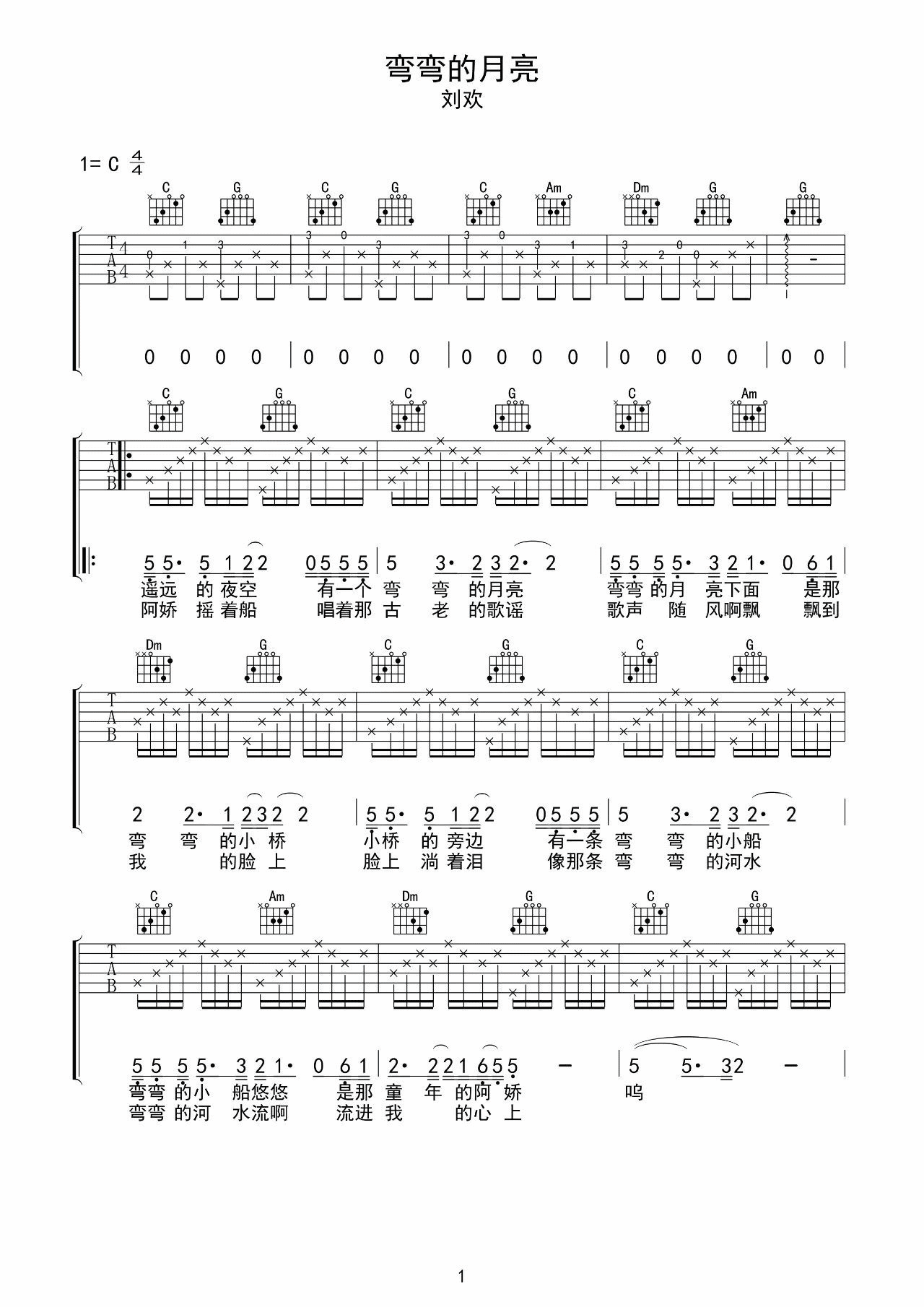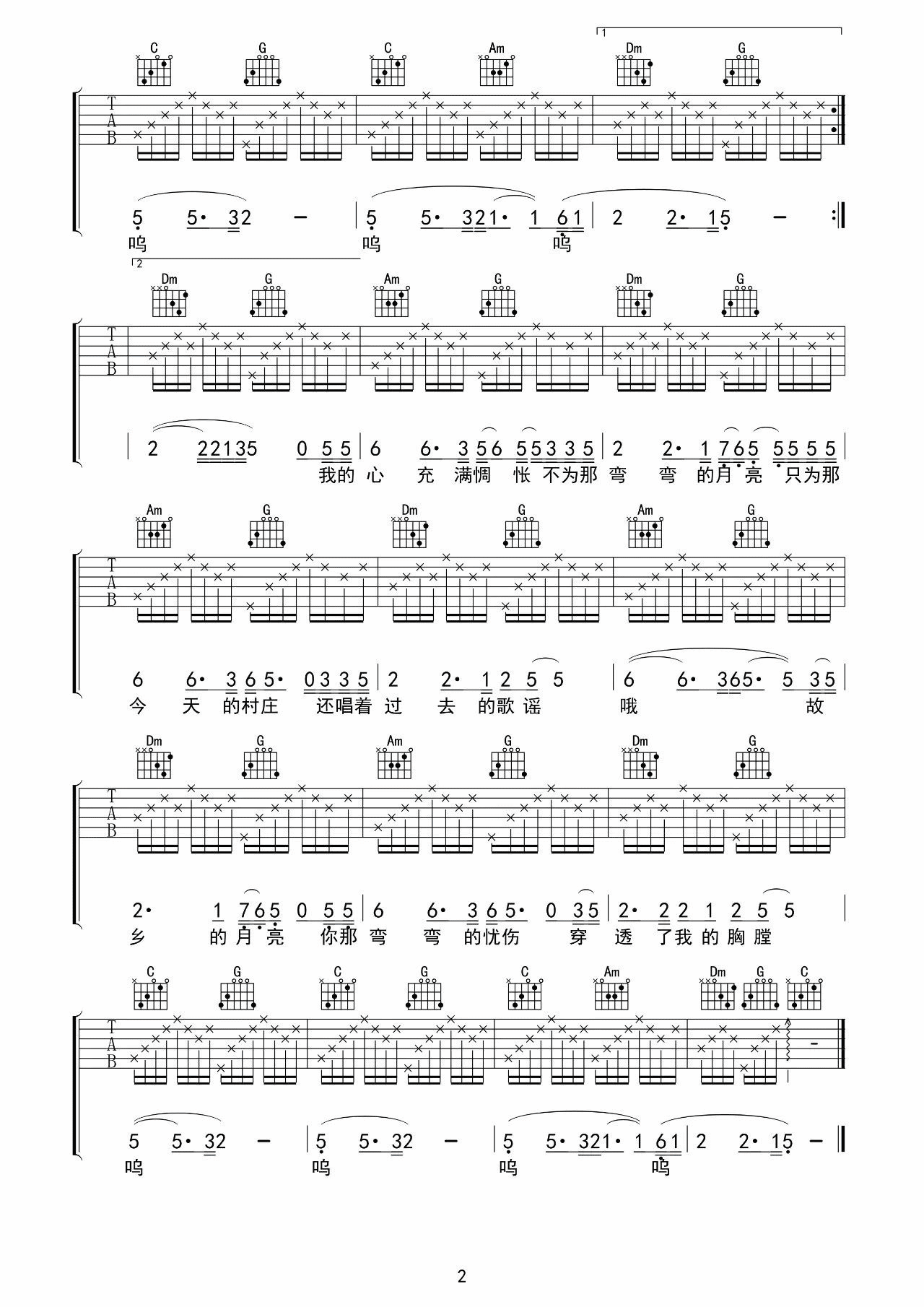 吉他谱 | 热门弹唱《弯弯的月亮》