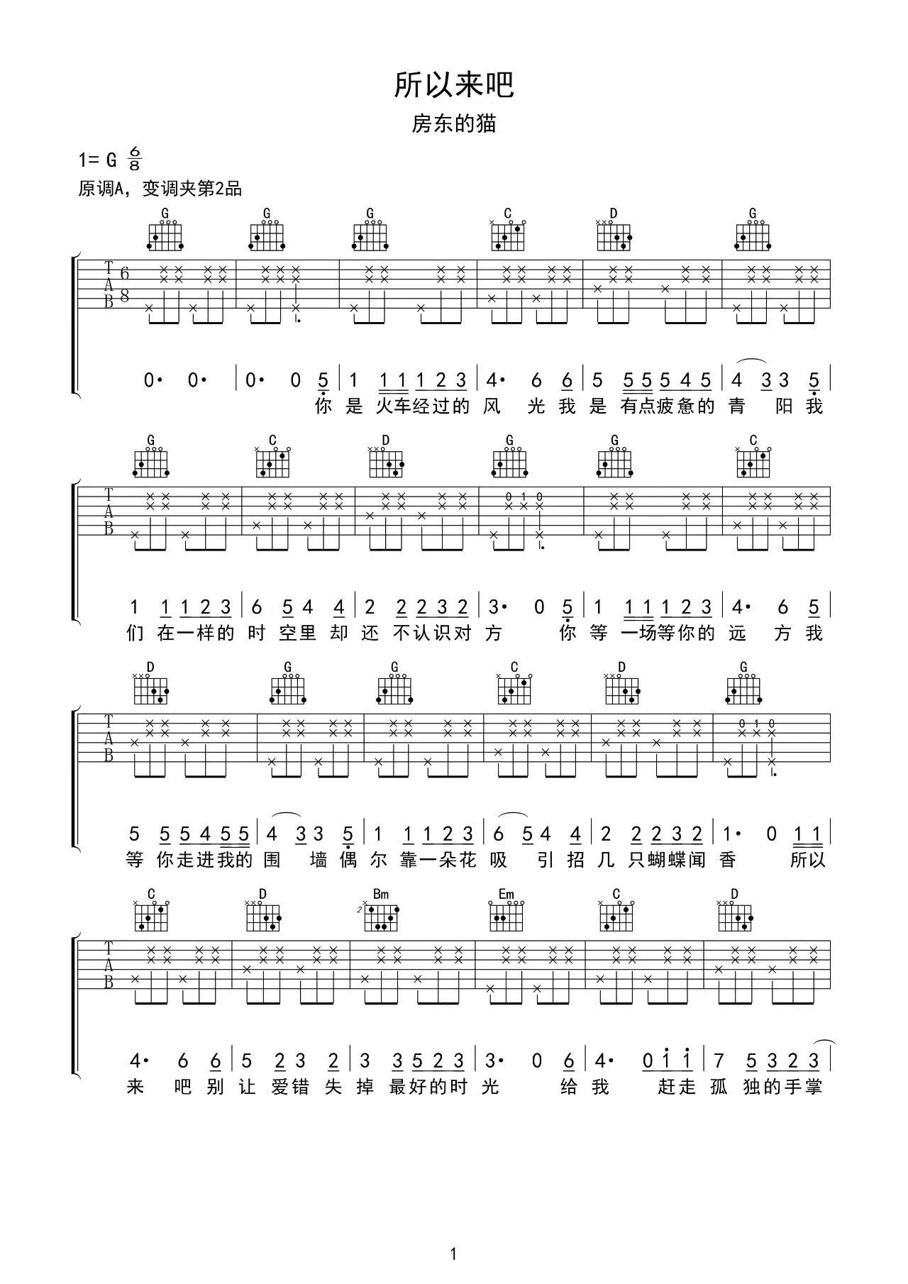 吉他谱 | 热门弹唱《所以来吧》