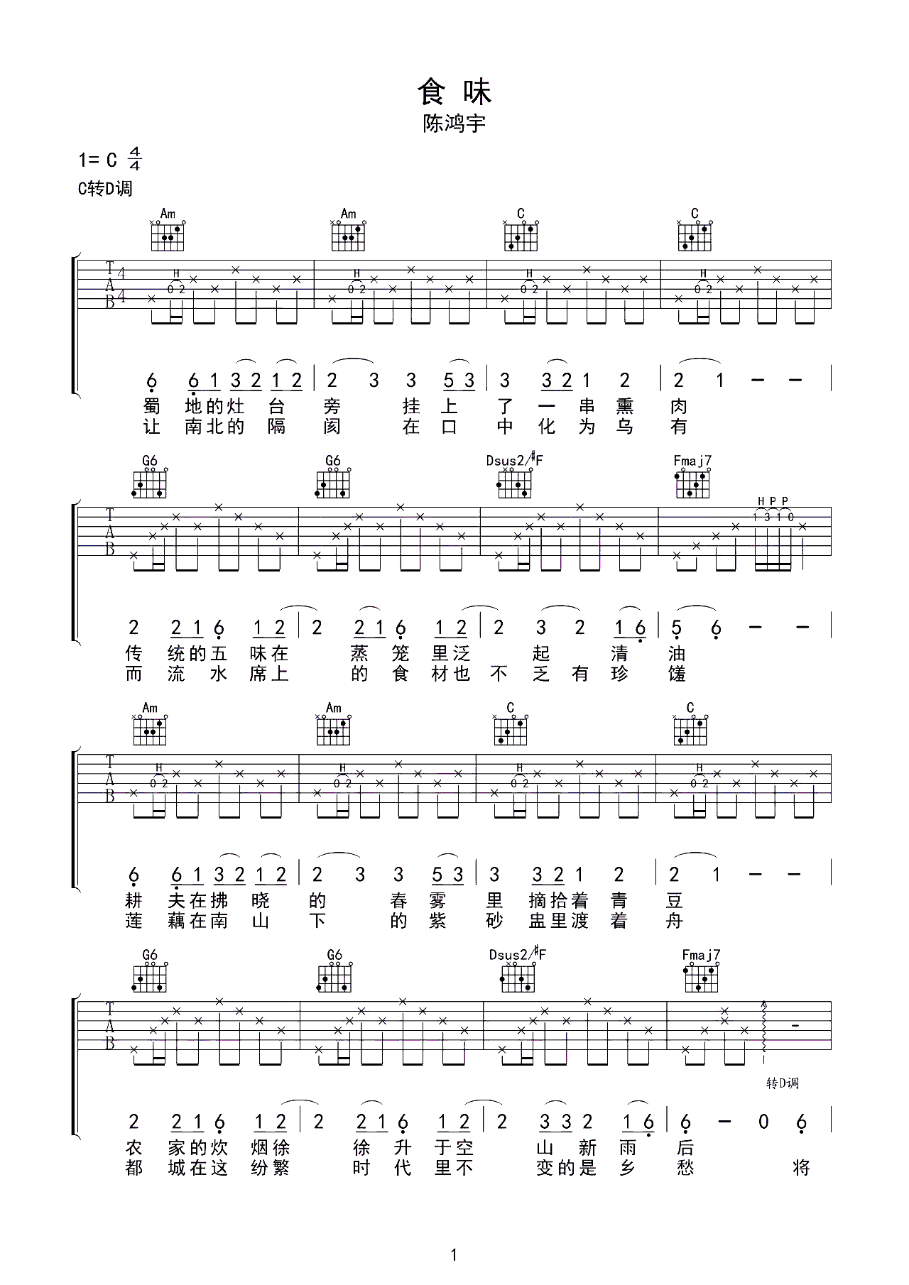 吉他谱 | 热门弹唱《食味》