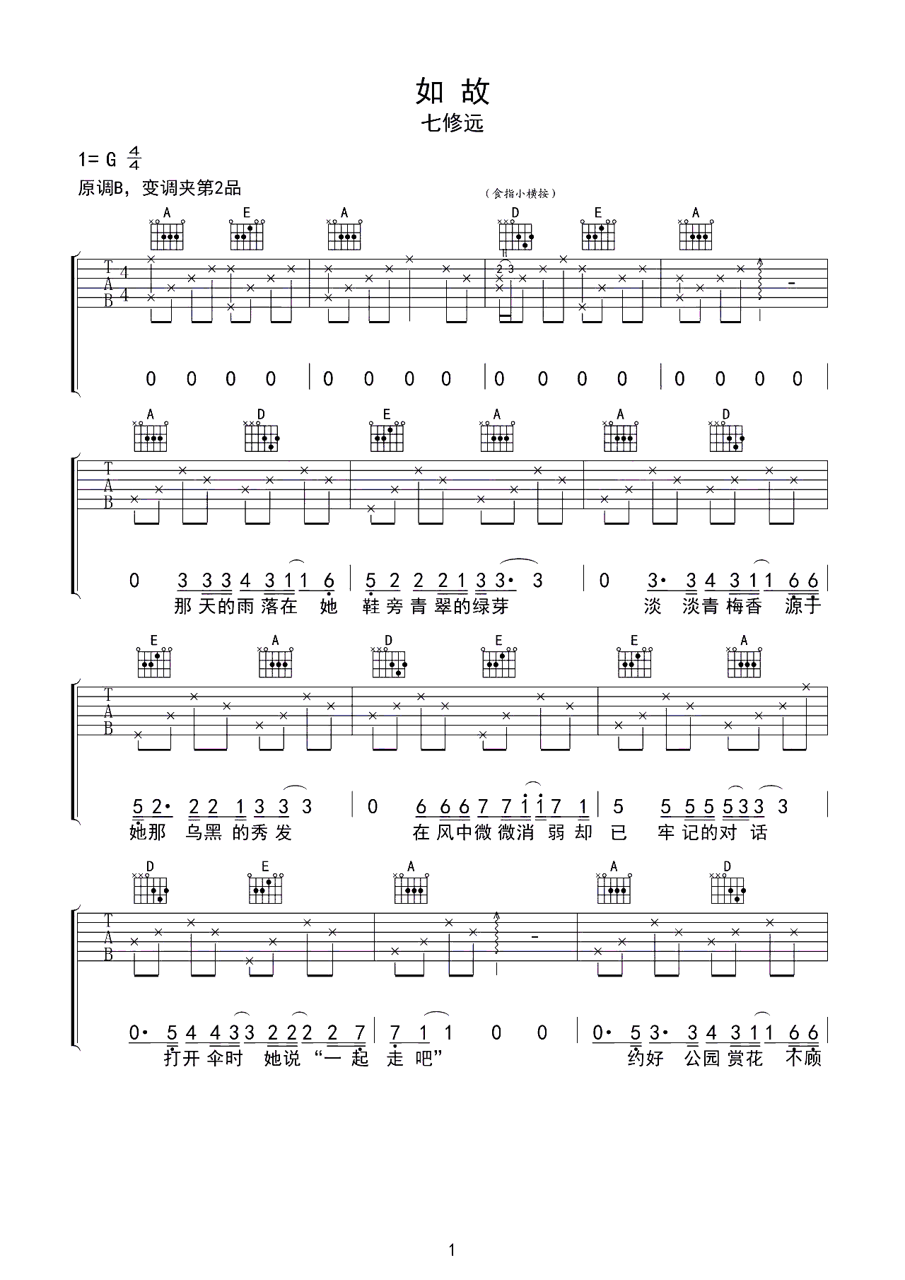 吉他谱 | 热门弹唱《如故》