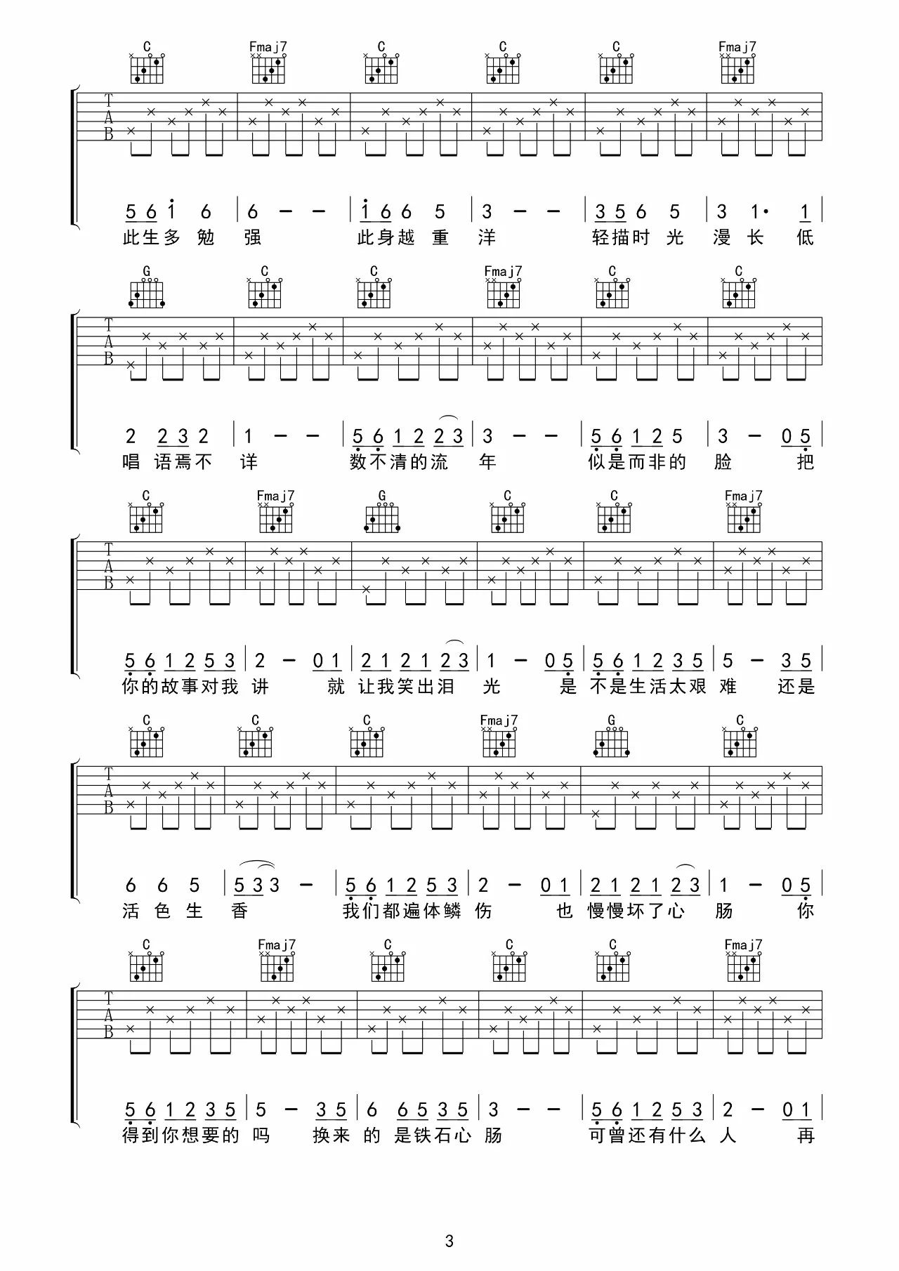 残酷月光吉他谱 林宥嘉 G调弹唱谱 六线