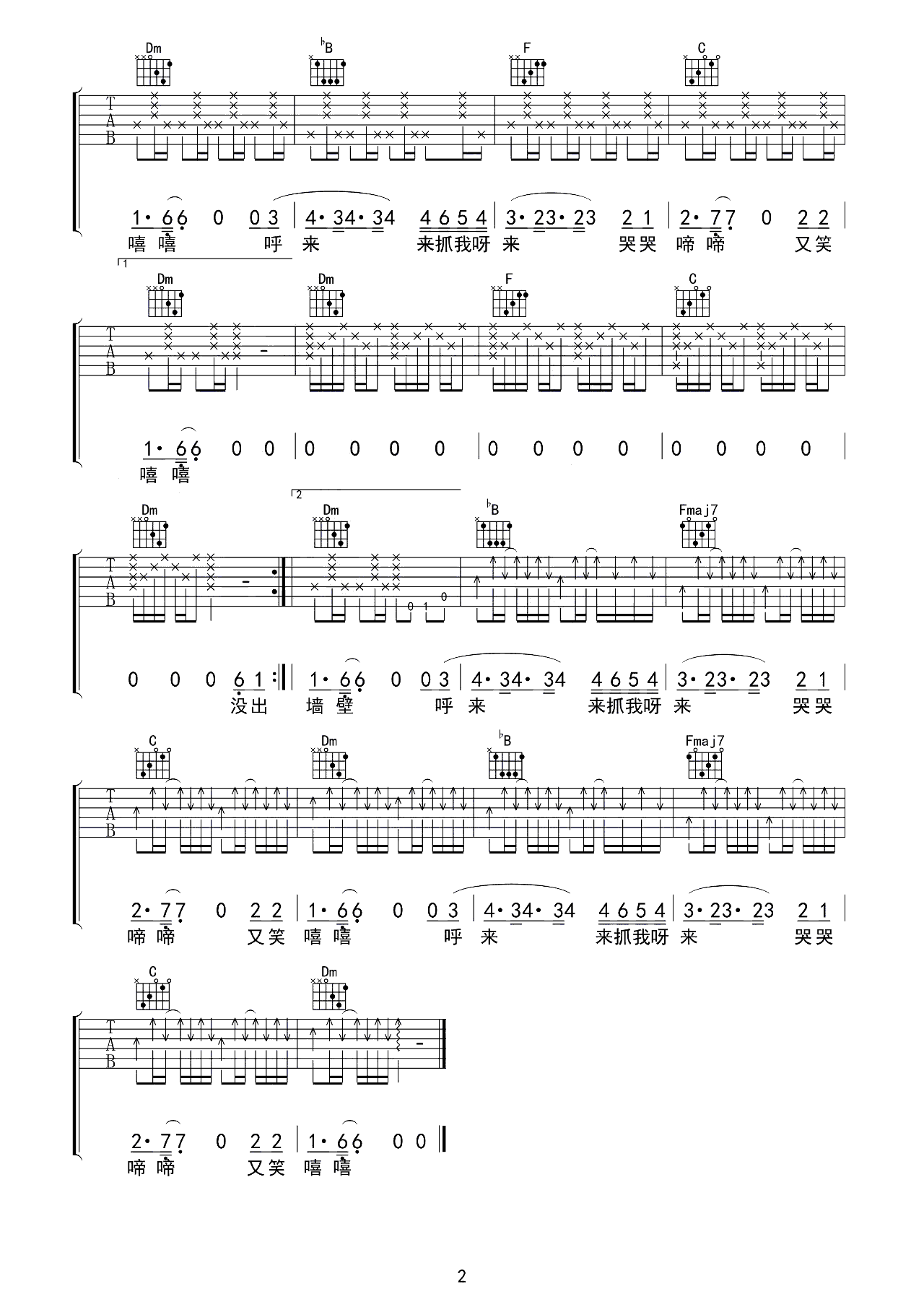 吉他谱 | 热门弹唱《迷藏》