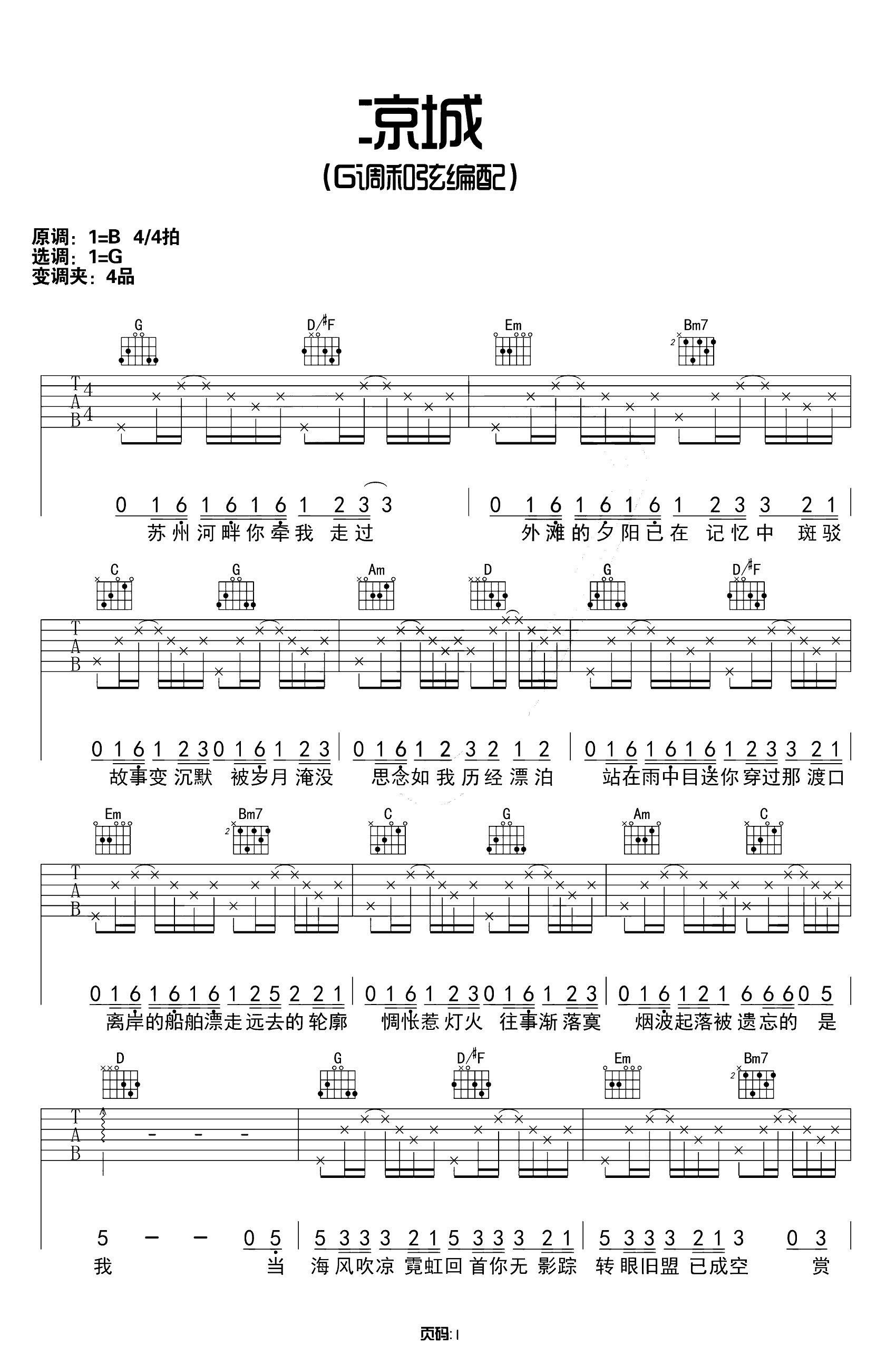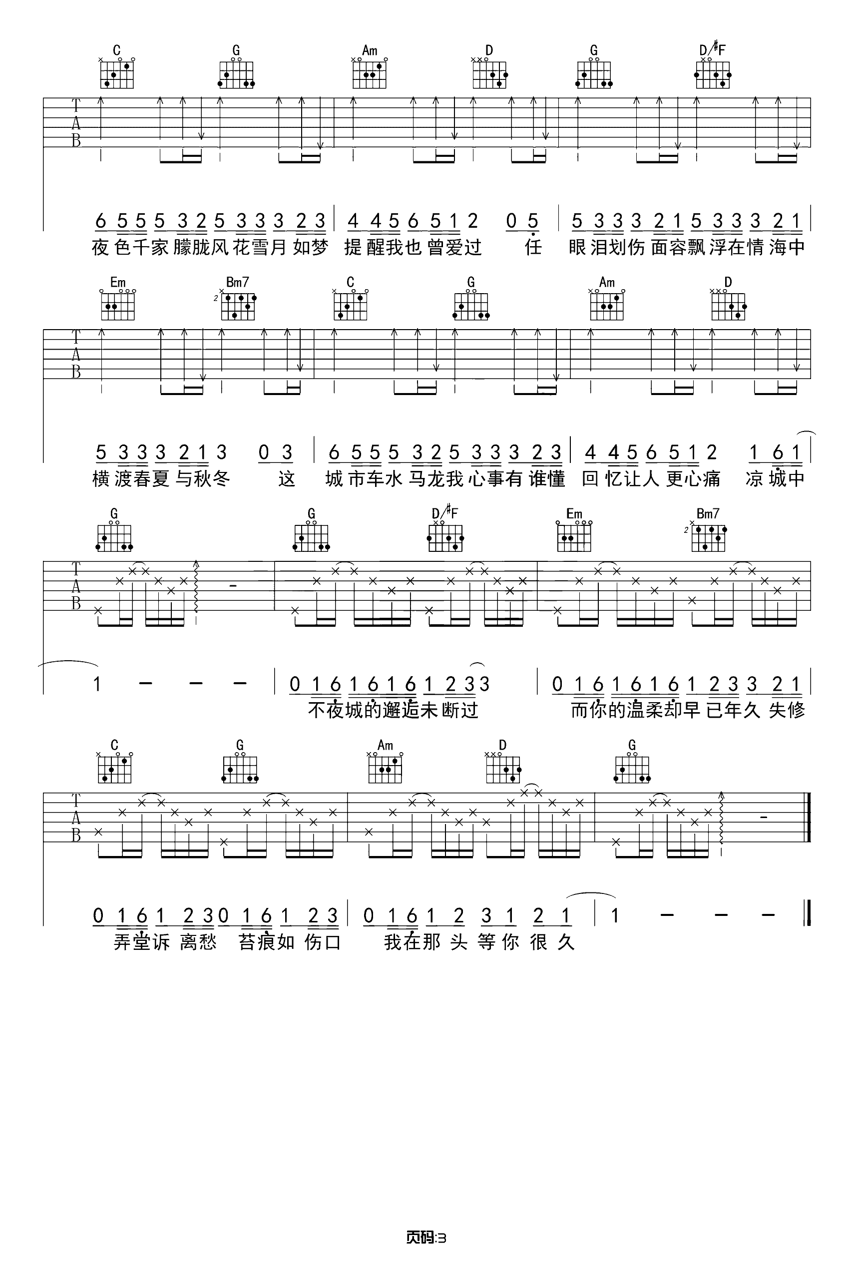 吉他谱 | 热门弹唱《凉城》