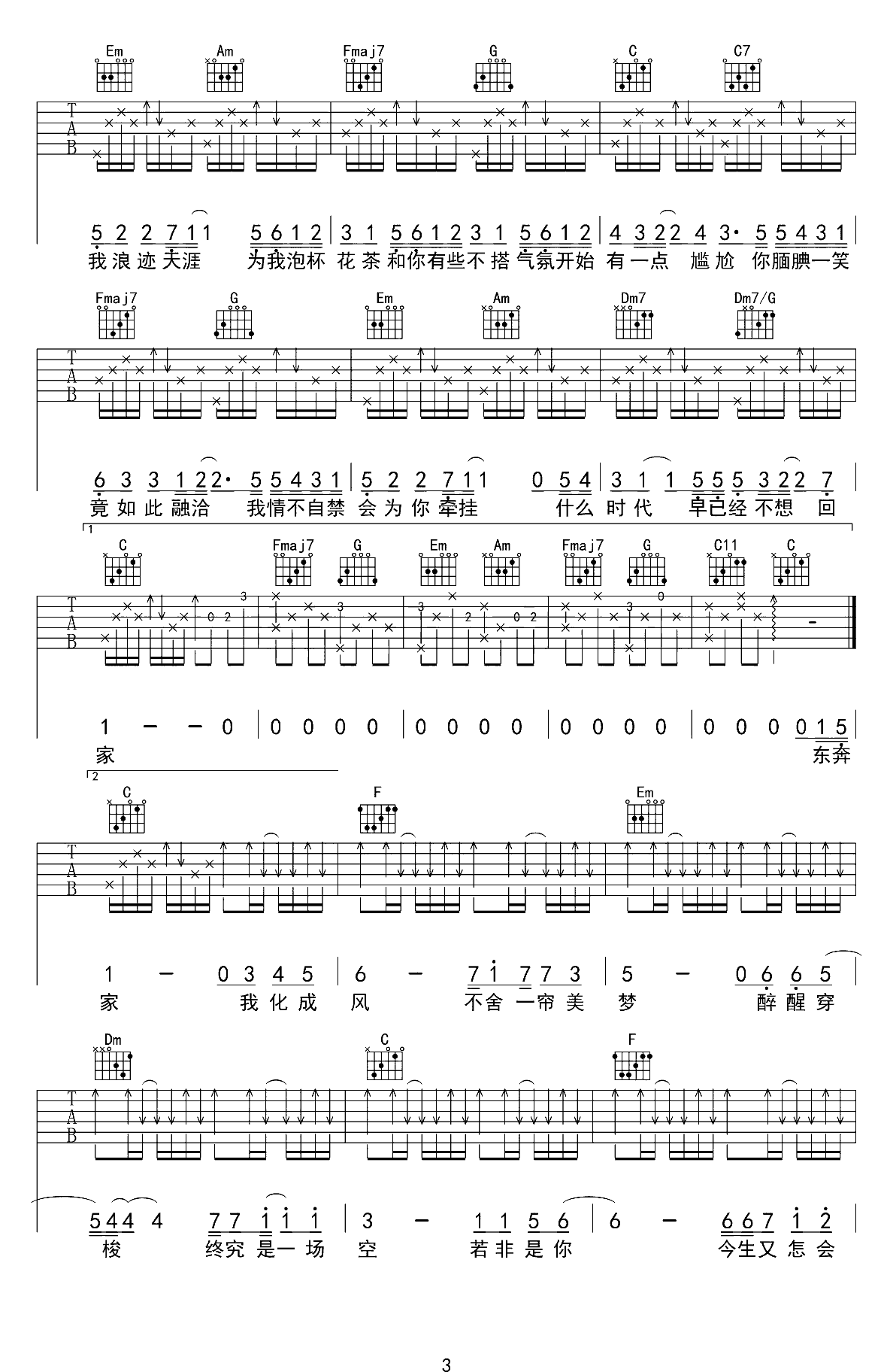 如果我不是我吉他谱_李宇春_弹唱六线谱